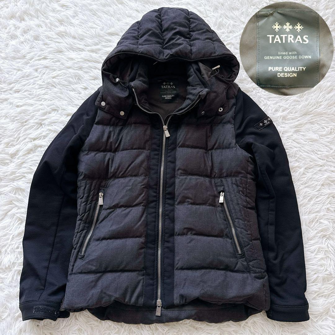 TATRAS タトラス ハイブリッドダウンジャケット Rライン ブラック フード付き ダウン ダウンジャケット MTA7BS4448 メンズ アウター ダウン90% フェザー10% 高級ライン 正規品