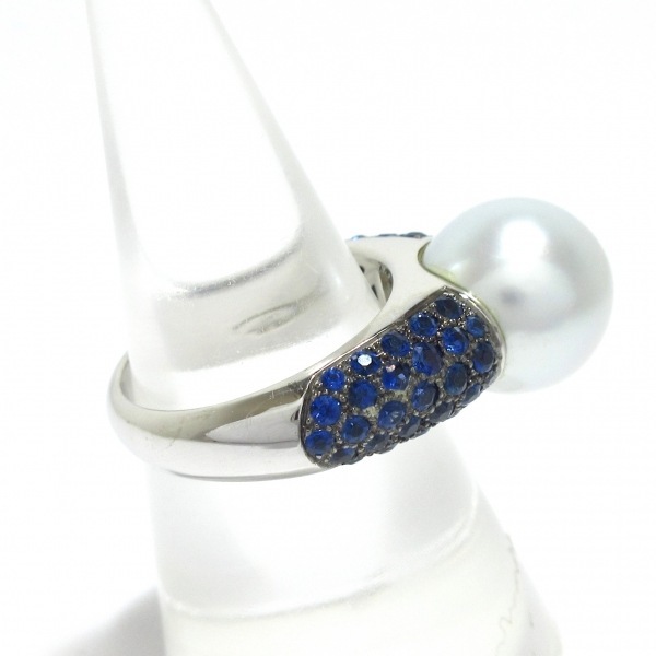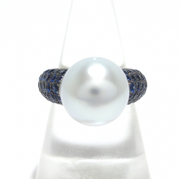 ノーブランド Unbranded リング 13 号 K18WG×ライトグレー×ブルー 総重量:10.1g 美品 アクセサリー(指)