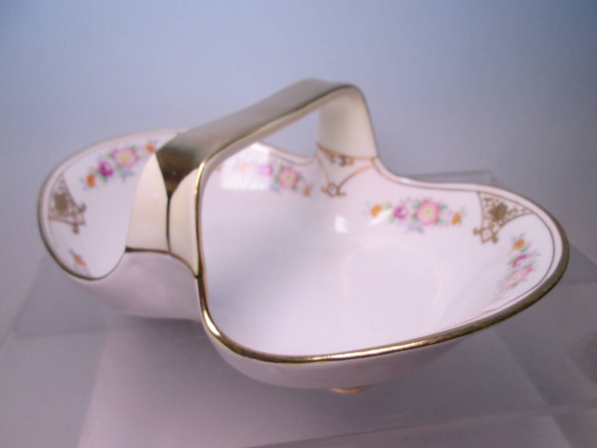 ☆オールドノリタケ 美しい金彩花文のバスケット形鉢 19,5cm M印 ヴィンテージ/ハンドペイント