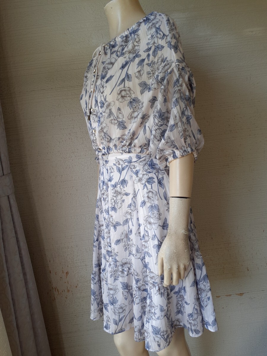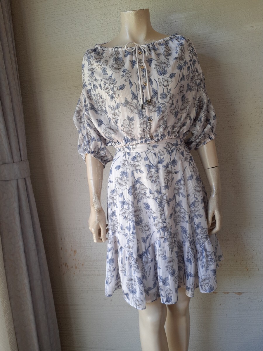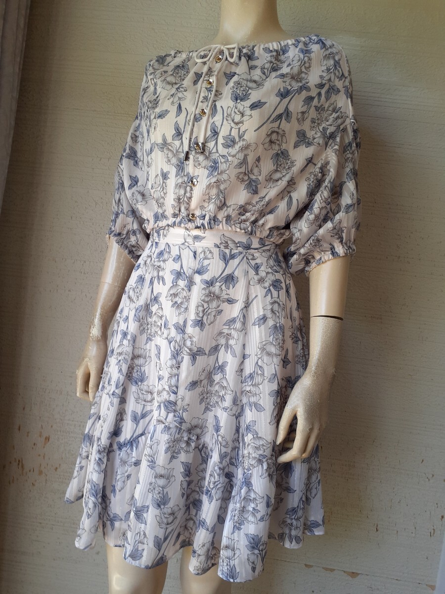 ※実寸: 肩幅 46cm 身幅 53cm 袖丈 29cm 裾幅 36cm 着丈 42cm (*対応サイズ表示 B 82 86 T 160) *スカート ウエスト 30-31cm (*ゴム部分あり) ヒップ 46cm 着丈 54cm