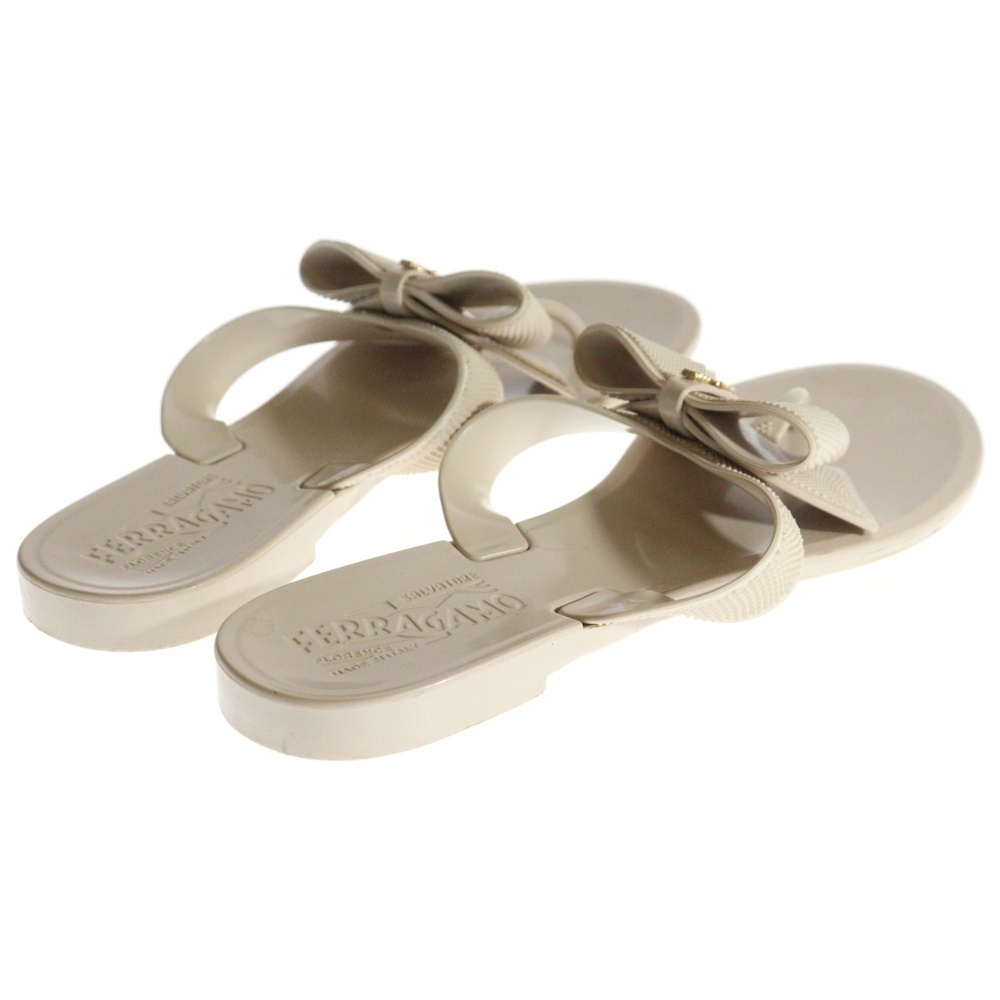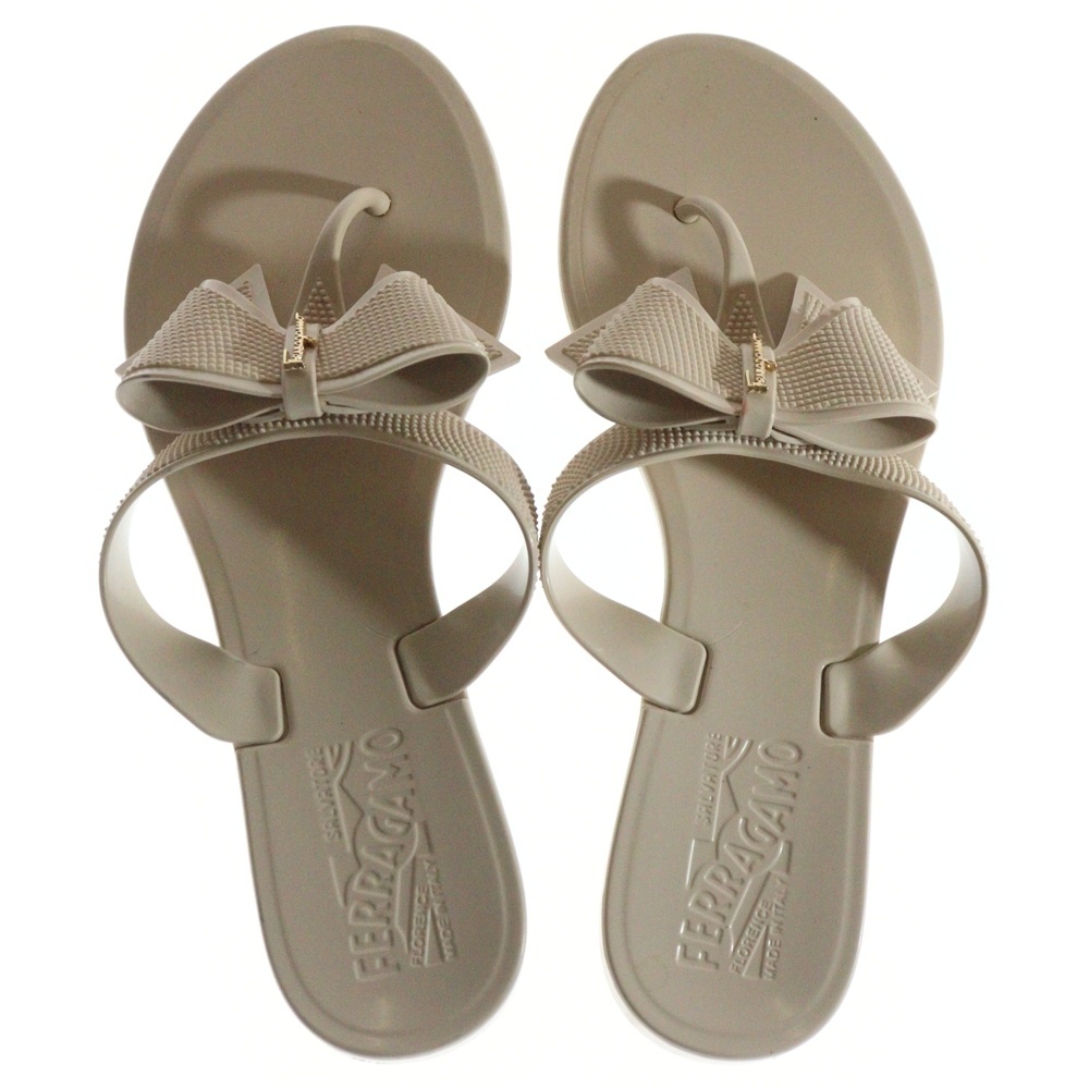 Salvatore Ferragamo サルヴァトーレ フェラガモ ヴァラリボン ロゴプレート ラバー フラットサンダル ベージュ レディース