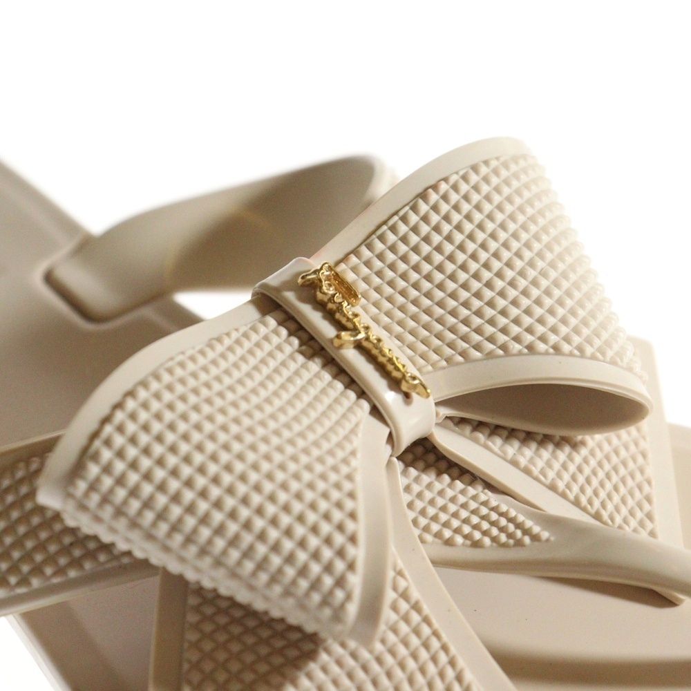 品名ヴァラリボン ロゴプレート ラバー フラットサンダル ベージュ レディース