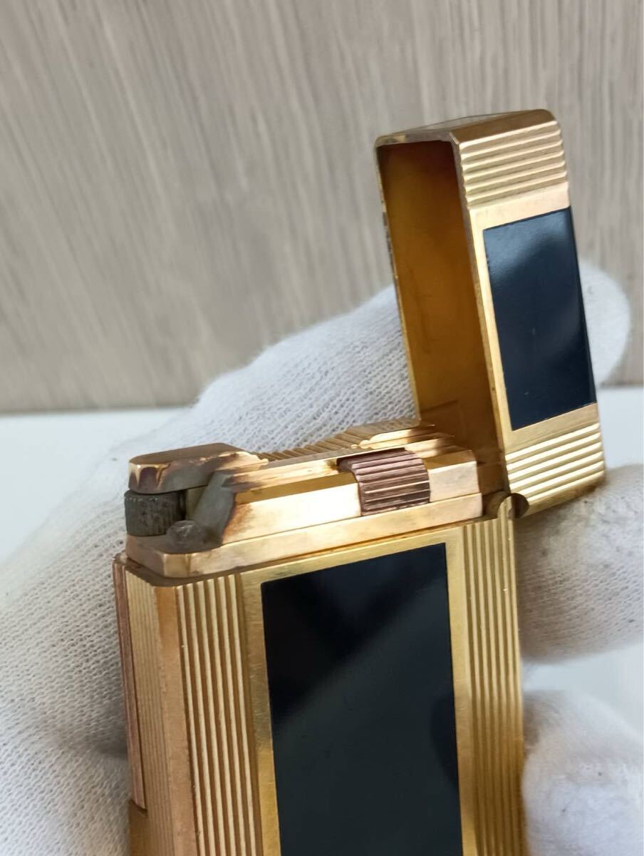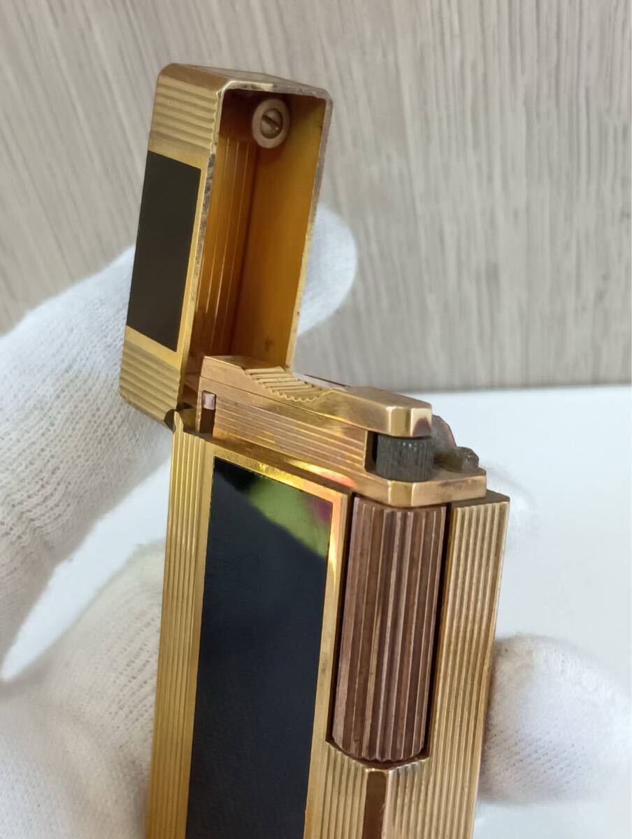 S.T.Dupontデュポン ローラー式ライター ガスライター 都彭 ゴールド×黒ブラック 喫煙グッズ 喫煙具 現状品