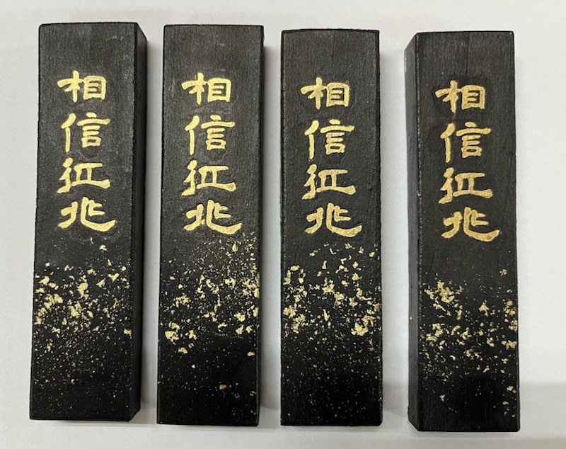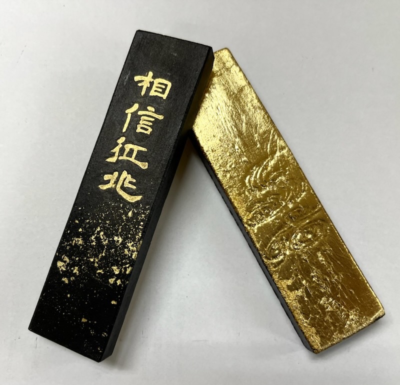 書道用 固形墨 「相信紅北」紅入り油煙製の出品です。 強い艶を発し伸びも抜群の黒茶系の墨色です。 サイズ約 縦127mm横34mm厚さ14mm 重さ85g 全て新品未使用 桐箱入りです。 土日は休みの為取引連絡、発送が出来ません。 平日のみの対応になります。