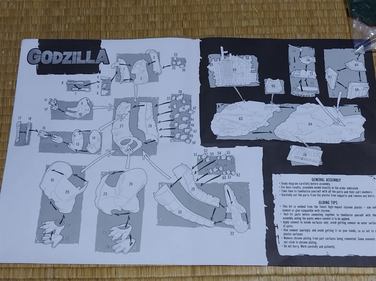 【★海外製★ゴジラ電車咥えジオラマセット未塗装組み立てプラモデル。完成後のサイズはゴジラ全高約43センチと大きいです。以前、購入して長らく積んどくキット状態でしたがキット整理の為出品します。こちらパーツ確認の為箱は開封してあります。パーツは揃っておりますが万が一見落としや開封時の紛失には古いキットの為、対応出来ませんのでメーカーにお問い合わせ下さい。画像が全てとなっております。尚パーツの内袋は未開封です。