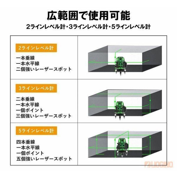 レーザー墨出し器 グリーンレーザー墨出し器 5ライン 6点 フルライン バッテリー2個付き 高精度 光学測定器 軽量 墨付け 建築 新品