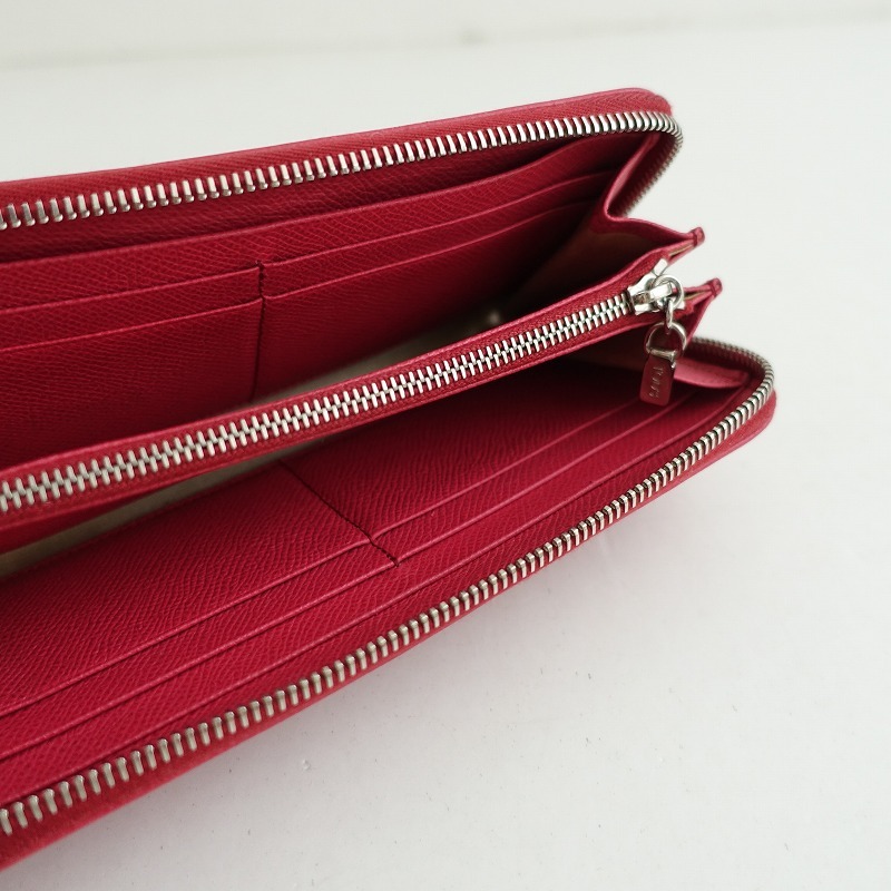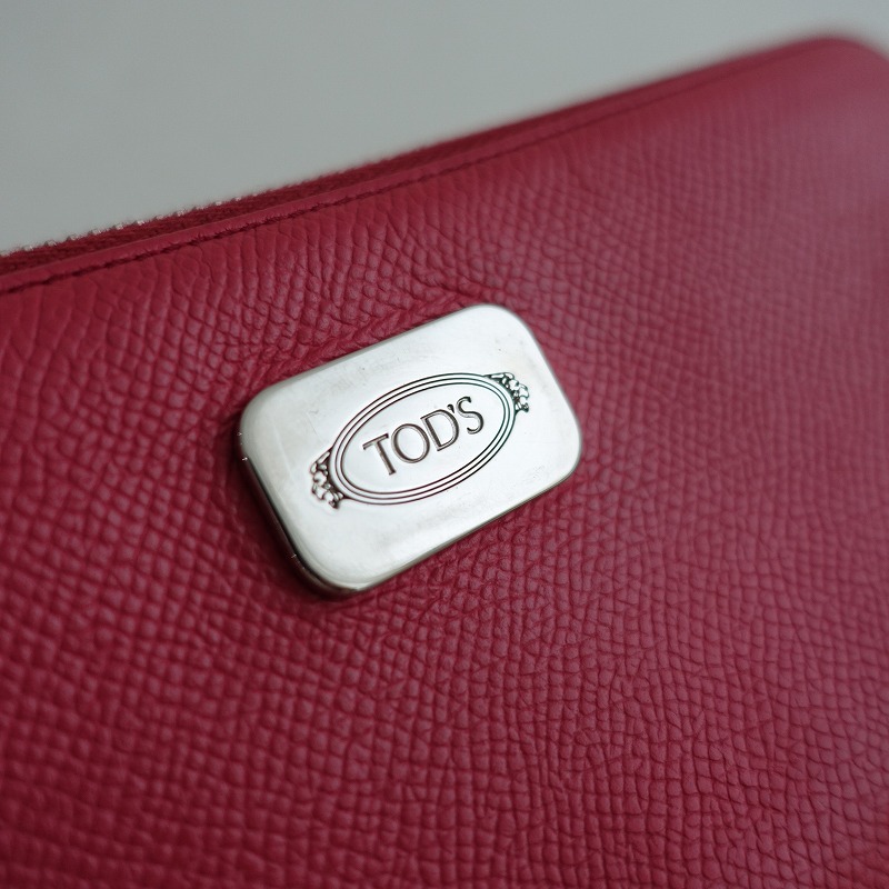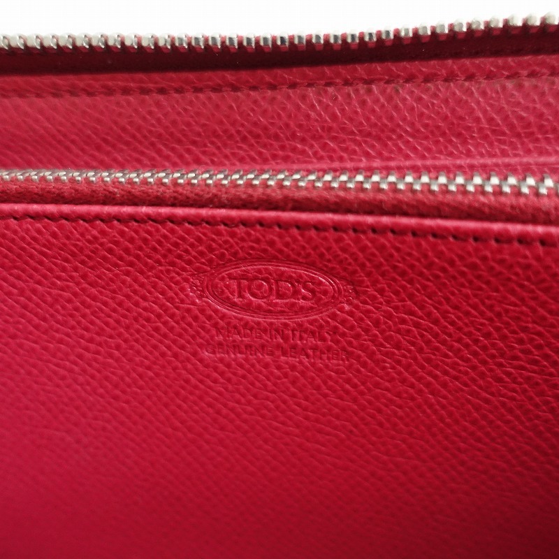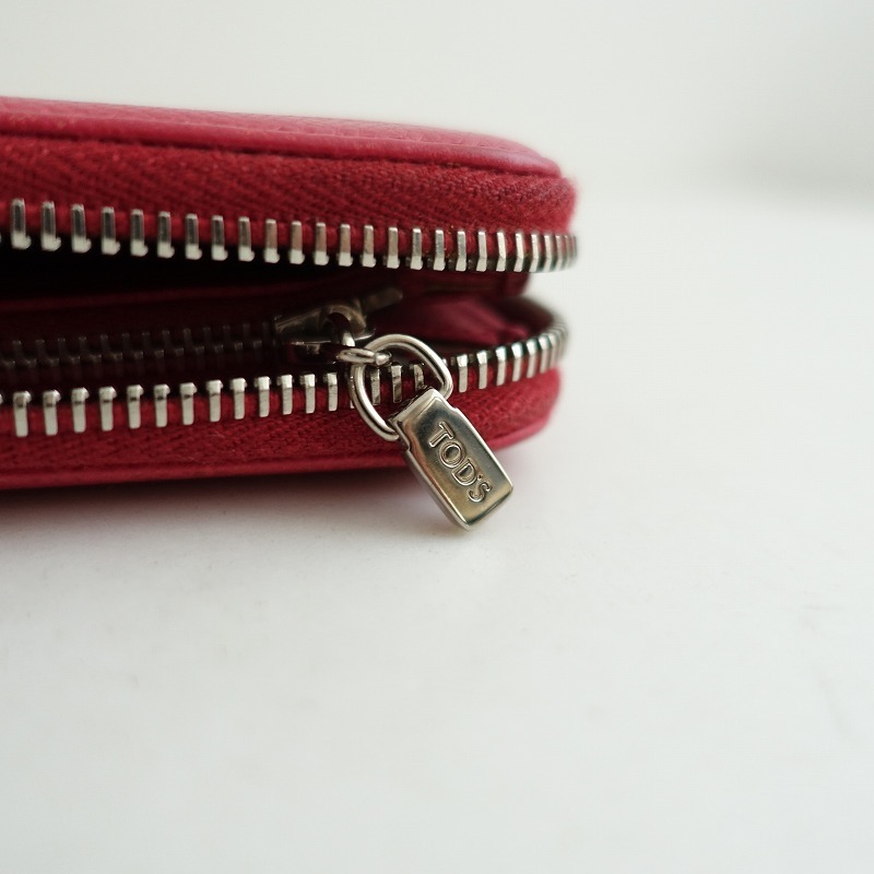 | TOD’Sのラウンドファスナーレザー ウォレット 長財布です。カラーはカラーは濃いピンクで、ラウンドファスナー開閉でお札入れが2つ、小銭入れ1つ(ファスナー式開閉:片側マチあり)、カードポケット8つポケット2つございます。トッズらしい上品なデザインや、上質な素材感、作りの良さを実感できる流行に左右されないデザインです。 |