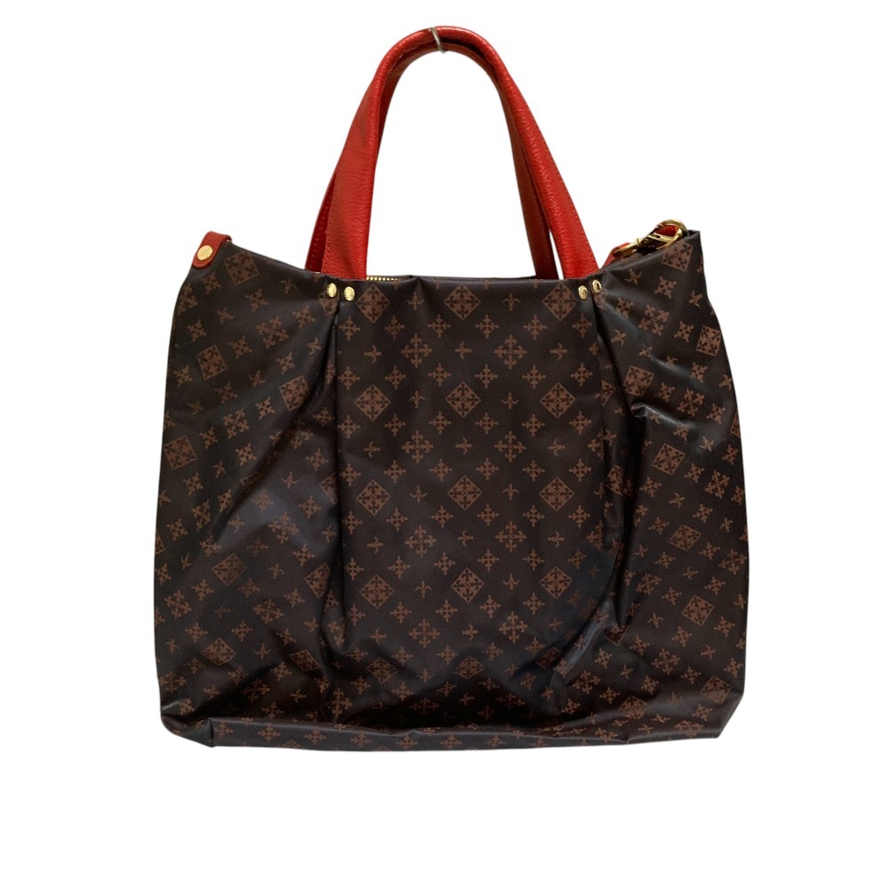 実寸サイズ:高さ32cm、幅40cm、マチ11.5cm、ハンドル長さ33cm、ショルダー長さ62cm