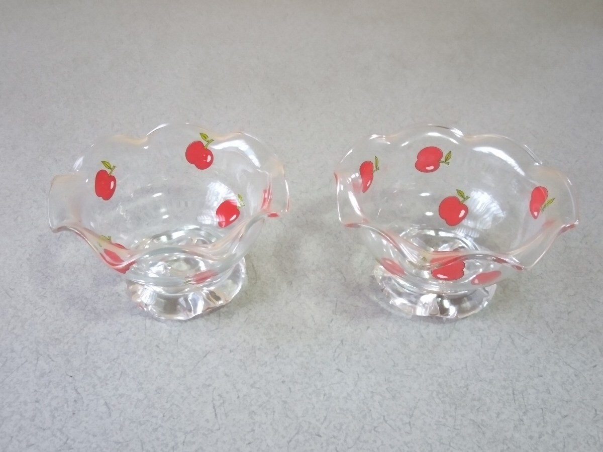 ■昭和レトロ デザートグラス リンゴ柄 中古品