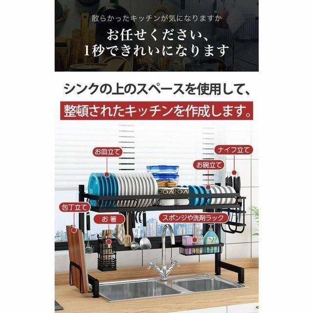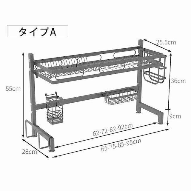 水切りラック 水切りかご シンク上 キッチン収納 収納ラック 食器 洗い物 組立簡単 台所用品ホルダ コンパクト タイプA 62cm