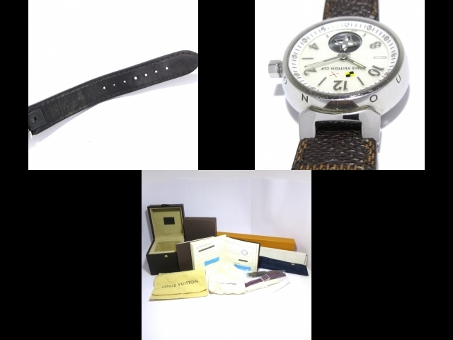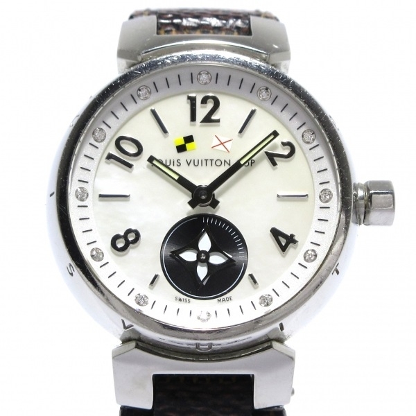 ヴィトン 腕時計 タンブールラブリーカップ Q12M0 レディース 12Pダイヤインデックス/シェル文字盤/ダミエ・キャンバスベルト
