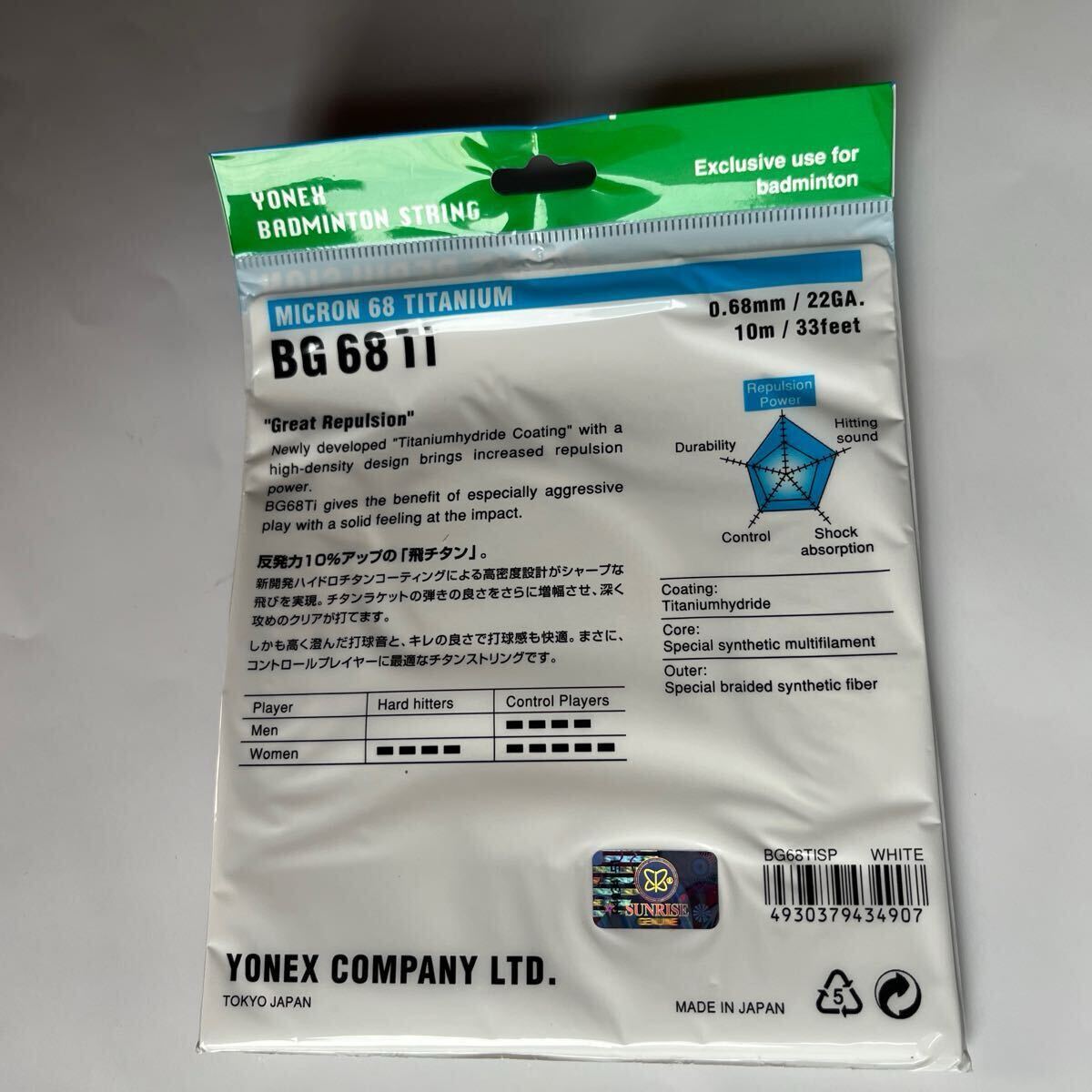 バドミントンガットYonex BG68Tiロールガットストリング1個 White 白