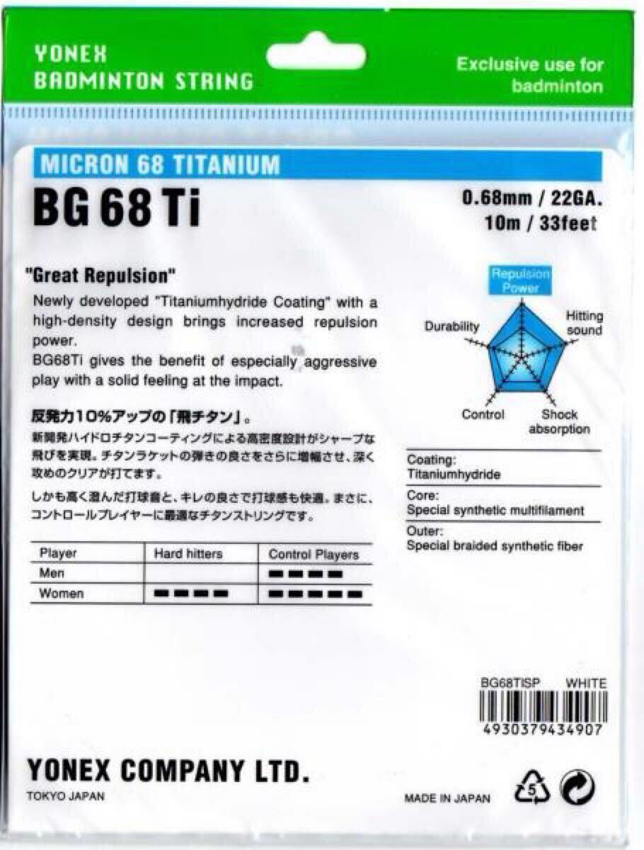 バドミントンガットYonex BG68 Tiロールガットストリング