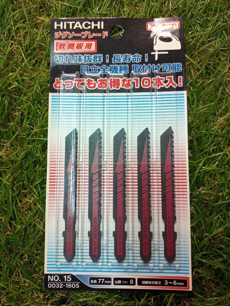 日立 HitachiKoki ジグソーブレード 軟鋼板用ジグソー刃 No.15(0032-1805)(徳用10枚入)全長77mm 山数8 切断材の厚さ3~6mm