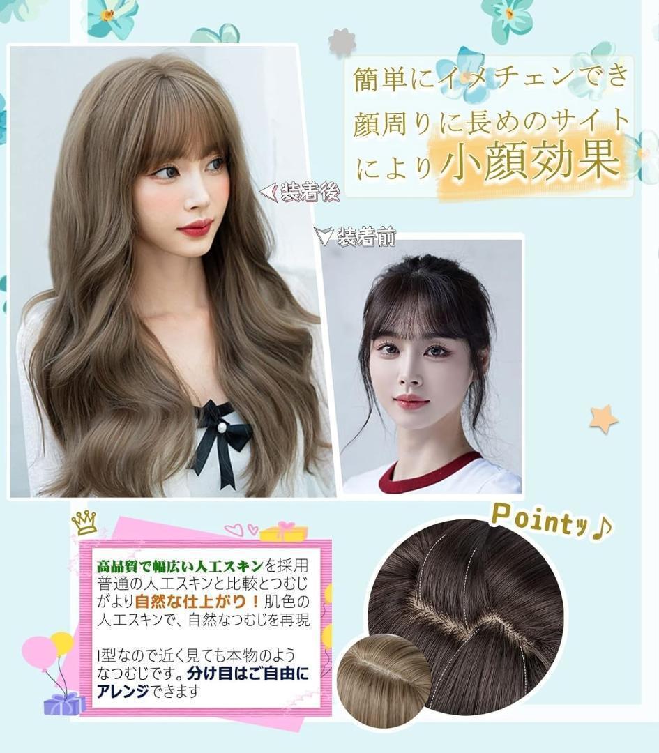 『ナチュラルなつむじデザイン』:高級で幅広い人工スキンを採用し、普通の人工スキンと比較とつむじがより自然な仕上がり!肌色の人工スキンで、自然なつむじを再現。I型なので近く見ても本物のようなつむじです。分け目はご自由にアレンジできます。