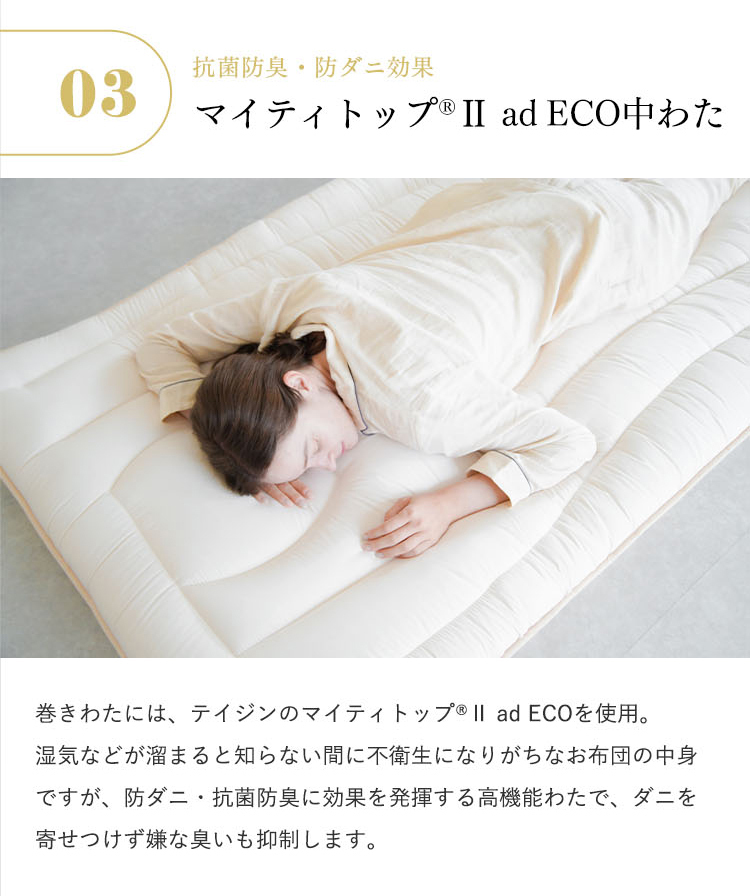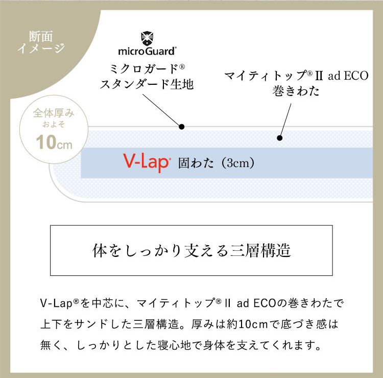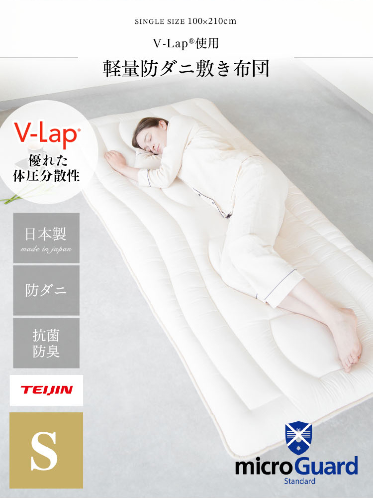 | □□□□□□□□□□□□□□□□□□□□□□□□□□□□□□□□□□□□□□ ■未使用・新品の商品です。 ※紙製梱包材にて包んで発送いたします ■ショップでの販売価格は18,700円(税込み)の商品です。 ■お支払いは【落札金額+送料】のみ、となります。 上記の点を踏まえ、ぜひ入札のご検討をよろしくお願い致します。 □□□□□□□□□□□□□□□□□□□□□□□□□□□□□□□□□□□□□□ TEIJIN(テイジン) ミクロガード スタンダード 軽量防ダニ 敷き布団 《シングル》 [V-Lap使用 軽量体圧分散 防ダニ 3層 敷布団] 【サイズ/寸法】 (シングル)約100cm×210cm 【素材/材質】 側地:ポリエステル100% 巻き綿:ポリエステル100%(マイティトップ2 ad ECO使用) 約1.8kg 中芯材:ポリエステル100% V-Lap:約1.5kg 製品総重量:約3.8kg 【商品形状】 敷き布団 【原産国】:日本 ご注意事項:モニターの発色の具合によって実際のものと色が異なる場合がございます。ご了承ください。 【商品説明】 防ダニ剤不使用、防ダニ生地「ミクロガード スタンダード」を側地に、中わたは帝人フロンティア株式会社の抗菌防臭・防ダニわた、マイティトップ 2 ad ECOを使用しました。 ダニやハウスダストなどのアレル物質対策にぴったりの安心で快適・清潔設計の掛け布団です。 「ミクロガード スタンダード」生地は極細ポリエステル長繊維を高密度に織ることで物理的にダニの侵入を防ぐだけでなく、寝室のホコリの主要因である布団(生地と中わた)そのものからのホコリの発生も防ぎます。 さらに、特殊加工により従来にないソフトな肌触りを実現しました。 オールシーズン気持ちの良い睡眠をサポートします。 ミクロガード、マイティトップ 2 ad ECOは帝人フロンティア株式会社の商標です。 ■Webサイトにて製品詳細を確認することができます。→→Webサイトへ | ||