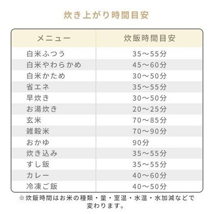 付属品:しゃもじ、計量カップ、電源コード、取扱説明書兼保証書