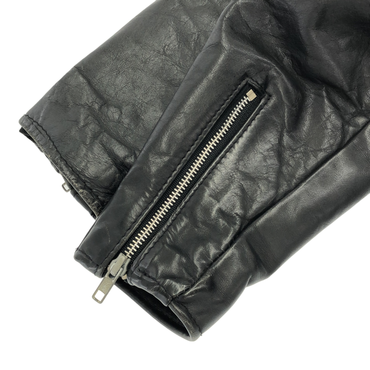 STAFF COMMENT | 80年代から90年代頃のSchott 618 ダブルライダースジャケットです。Schottのロングセラーモデルです。618はステアハイドが使用されています。メインジッパーは無刻印、袖はYKK刻印のジッパーです。ポケットは無刻印のリングチェーンジッパーです。細かな擦れや小傷等の使用感はございますが、レザーはしなやかでコンディションは良好です。38表記です。バイカーはもちろんタウンユースでも人気のあるモデルです。現行モデルですと定価で¥150,000前後で販売されていますのでお探しだった方は是非いかがでしょうか。 |