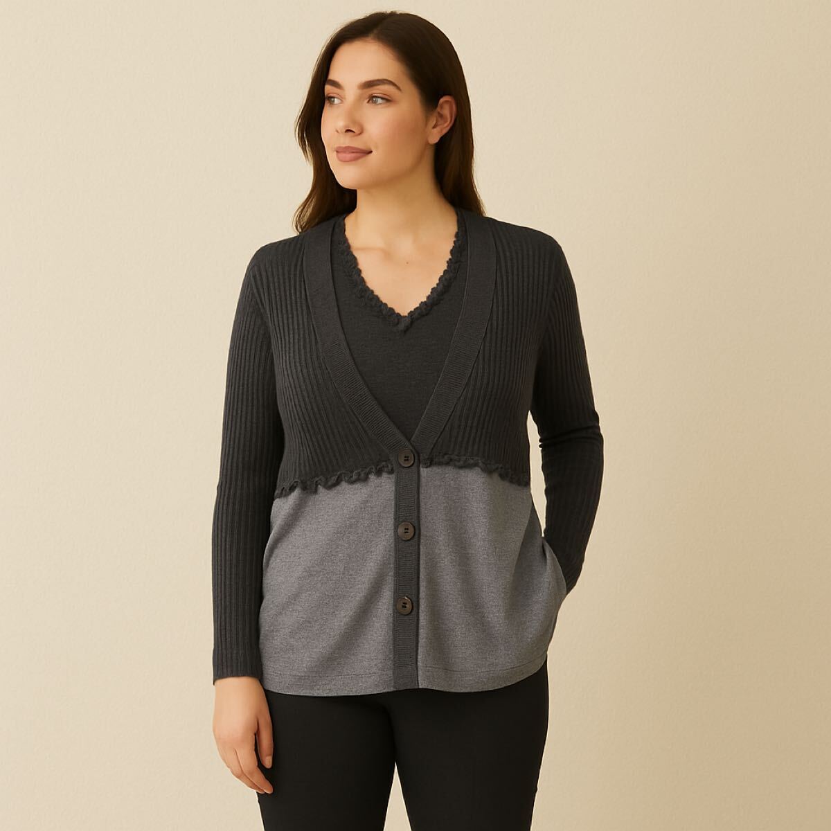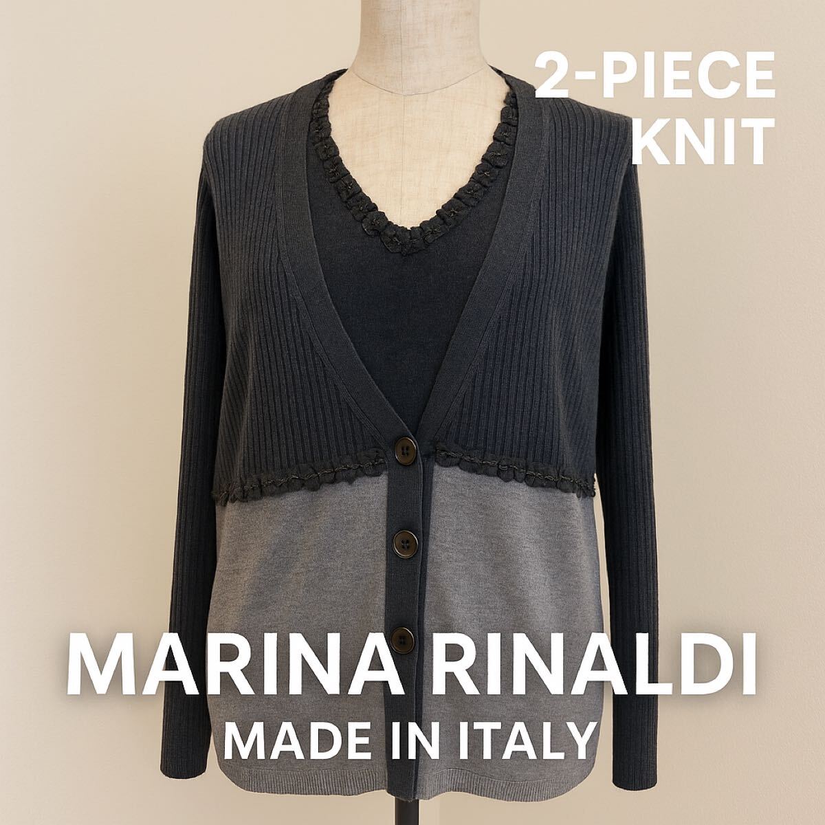 異素材ミックスのツートーンカラーが目を惹く、エレガントなイタリア製ニットセットです。