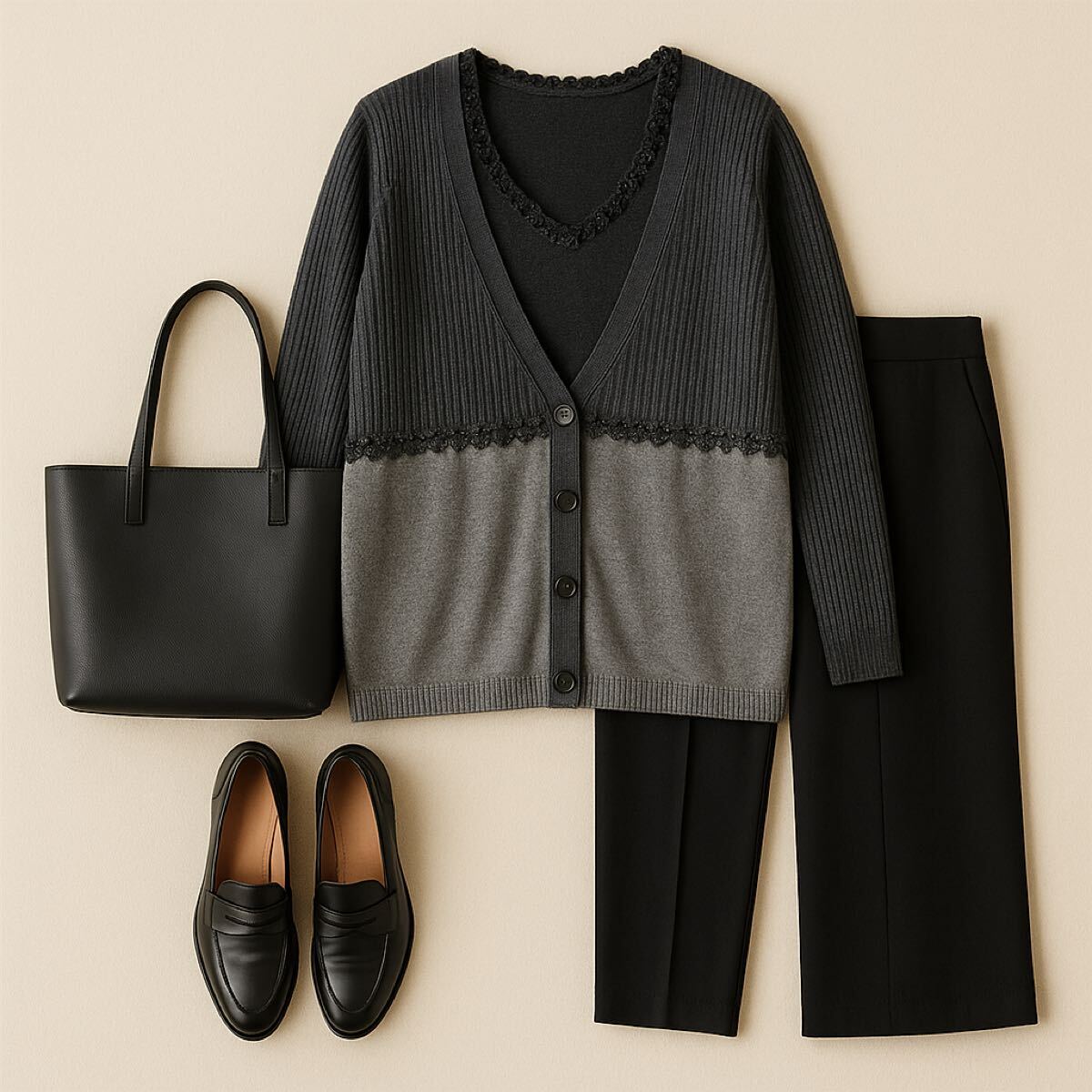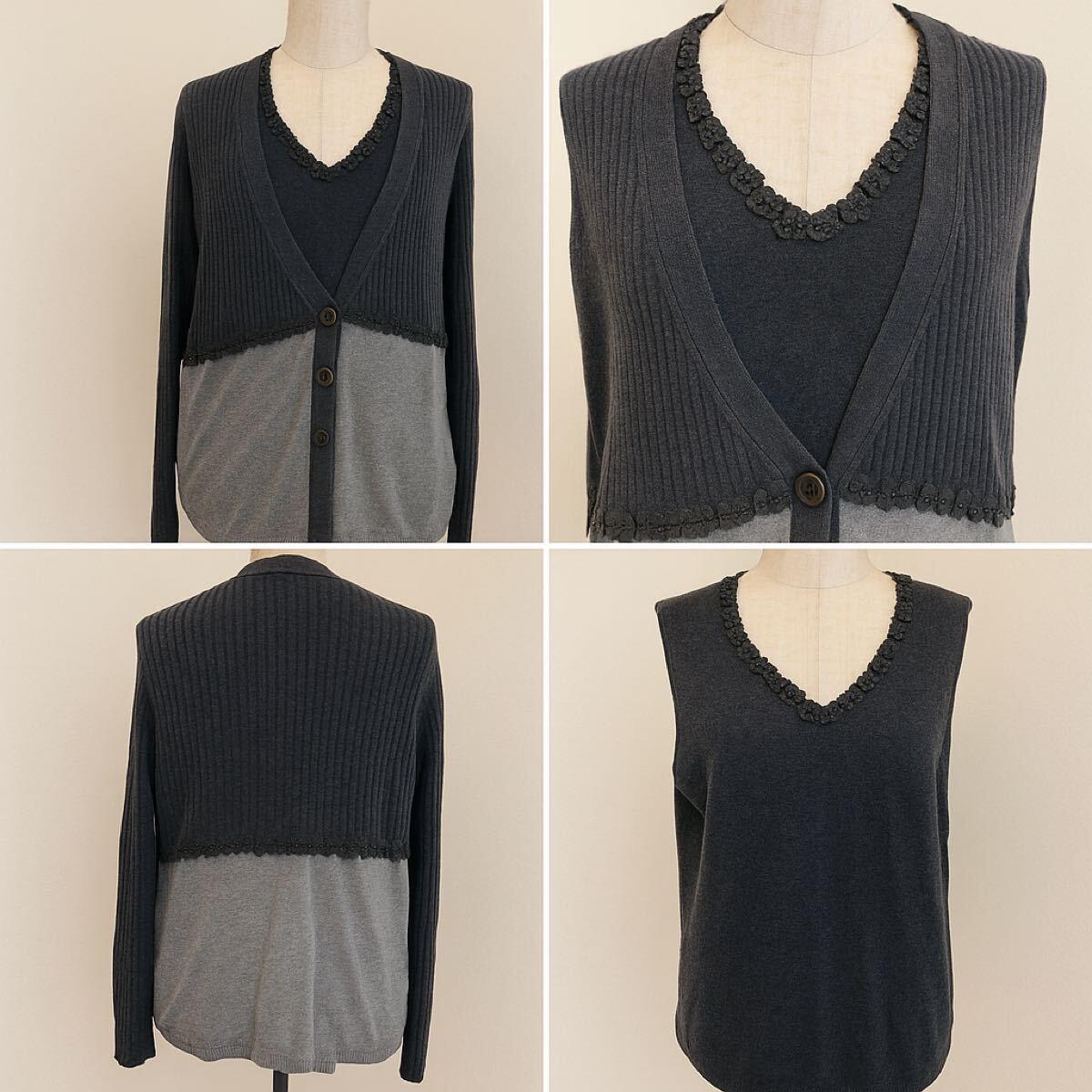 カーディガンとノースリーブはそれぞれ単品でも使えて、着回し力も抜群♪