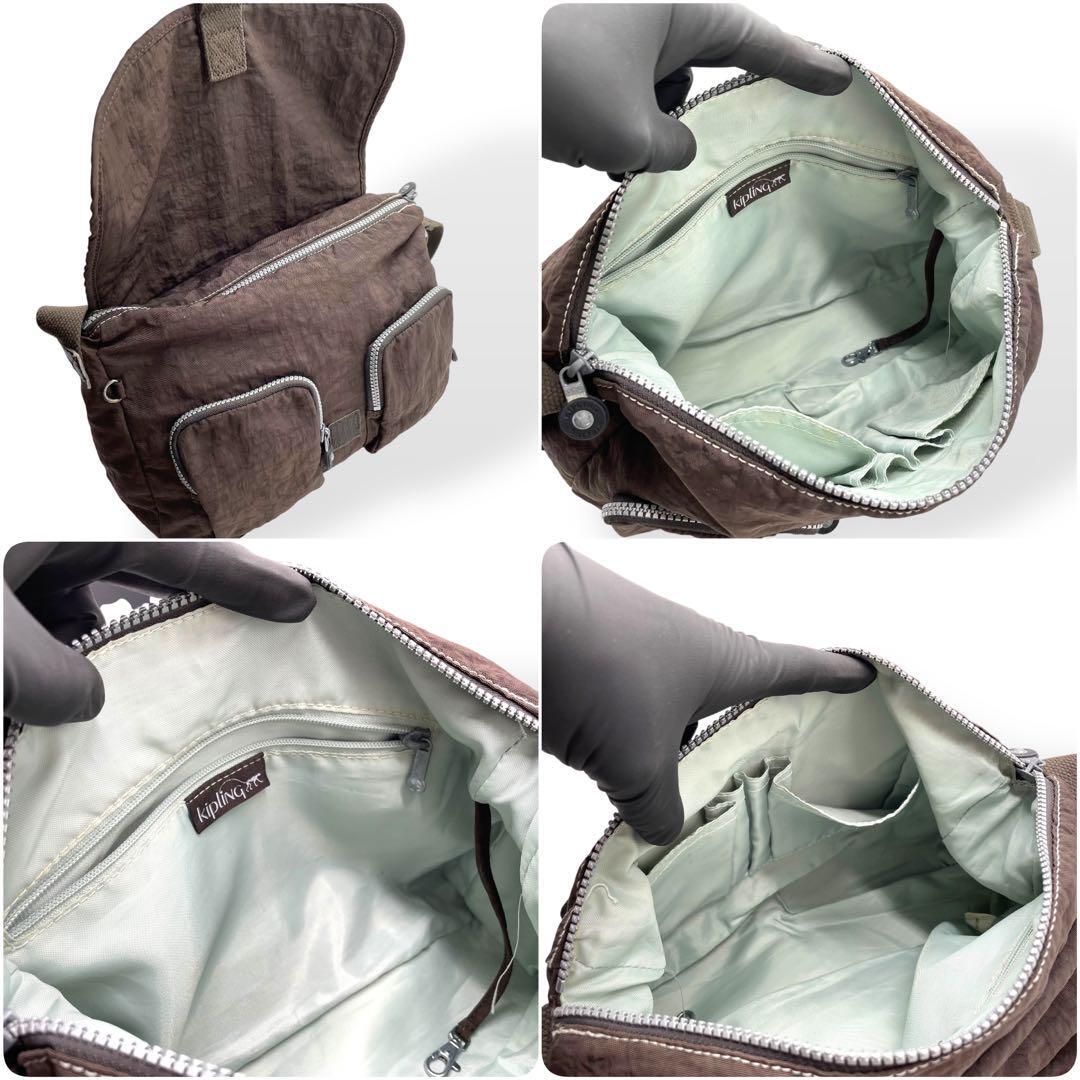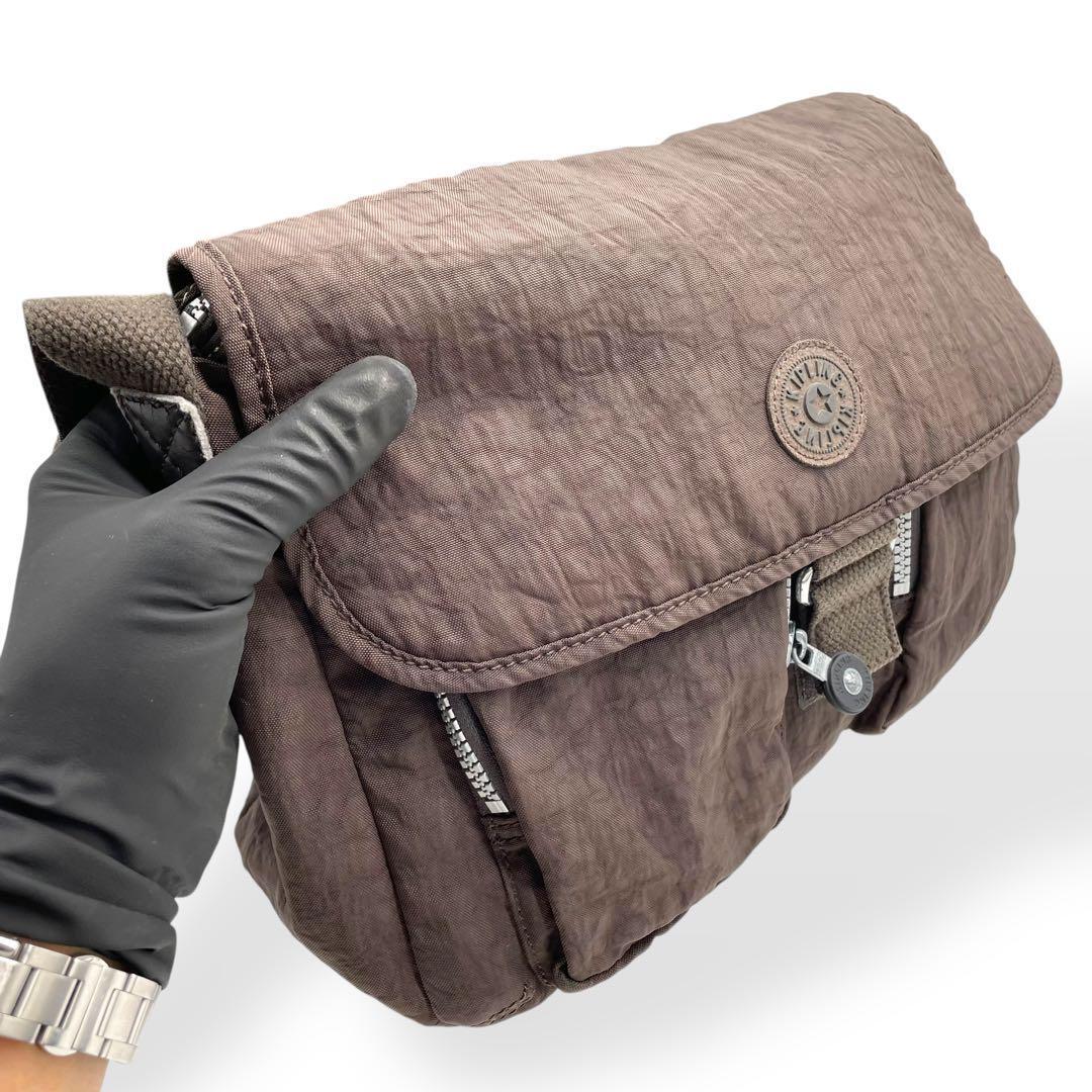 美品 Kipling キプリング ショルダーバッグ ブラウン ナイロン 斜めがけ