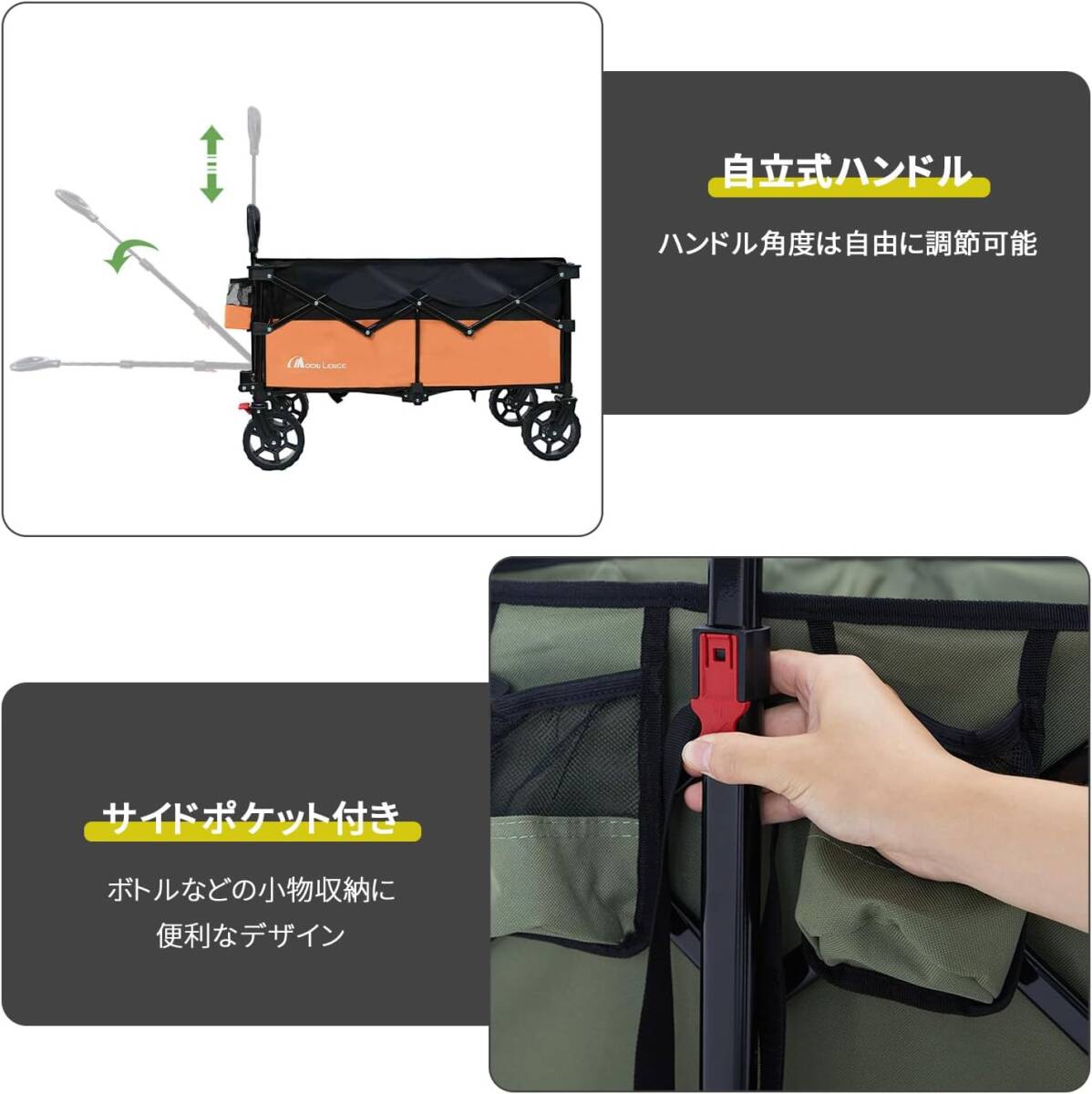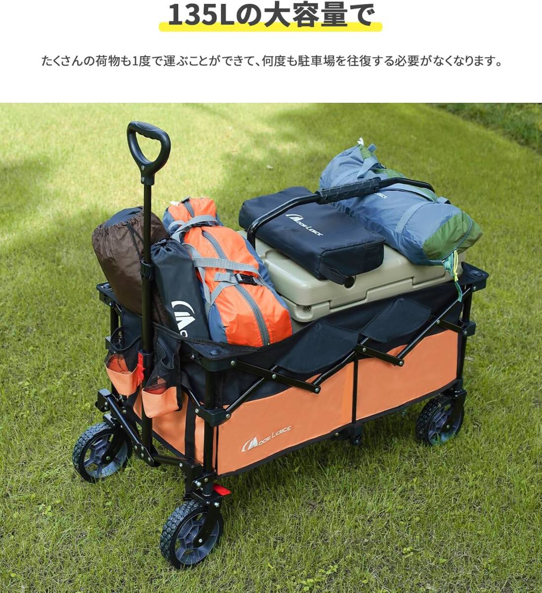 グレーブラック色 MOON LENCE 【ブレーキ付き】 キャリーワゴン 折りたたみキャリーカート 超コンパクト大容量135L 耐荷重130kg
