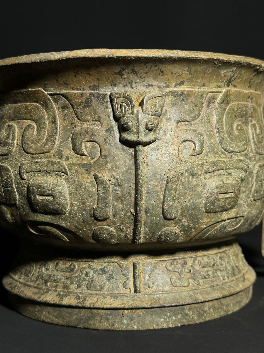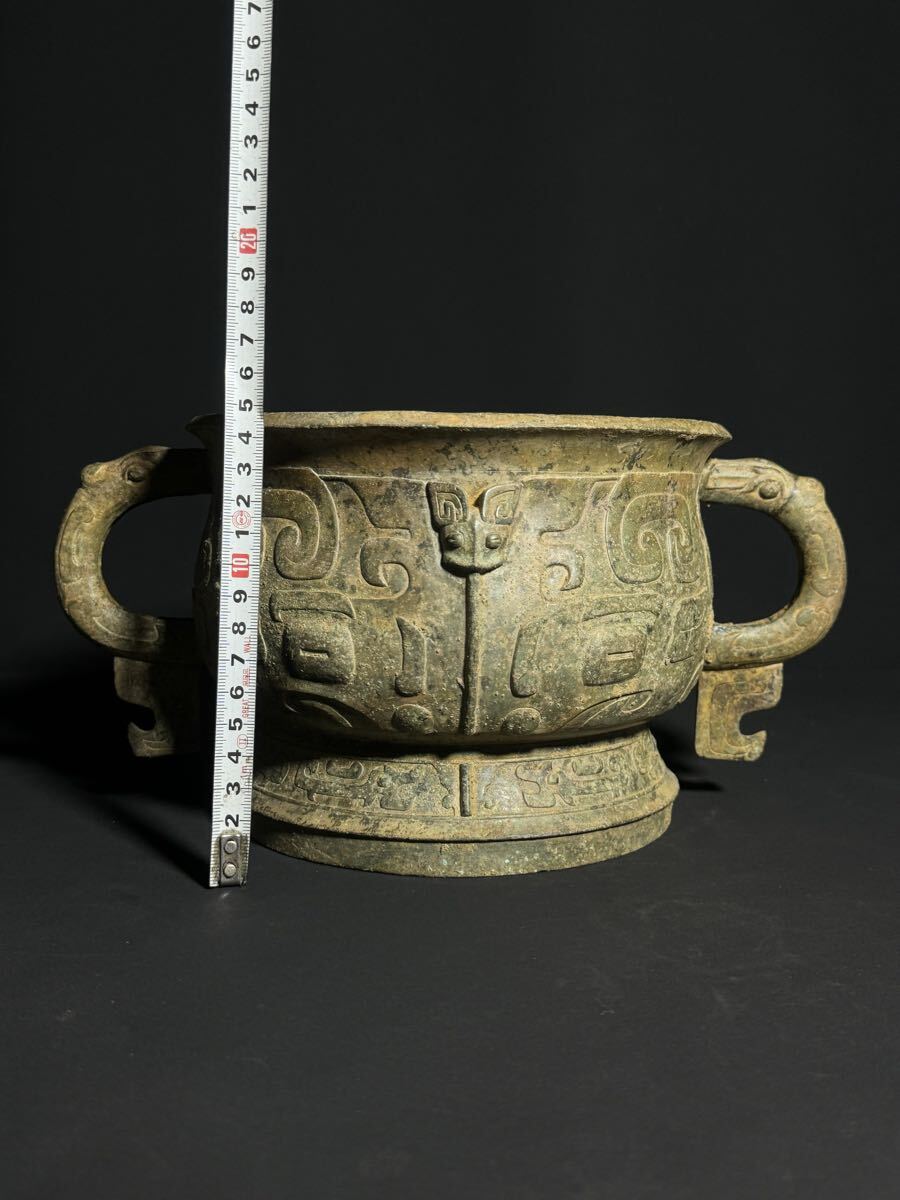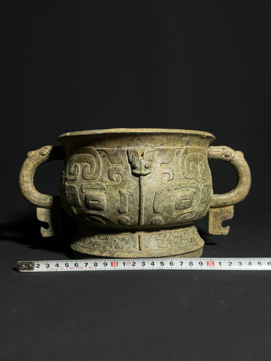 【雅園】中国古美術 漢時代 古銅鼎 青銅器 饕餮紋 古玩 骨董 時代物 古美術 唐物 当時物 置物 旧家蔵出 hg28