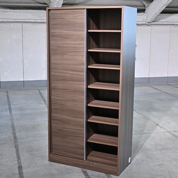 扉の内側には複数段の可動棚が備わっており、衣類や小物、