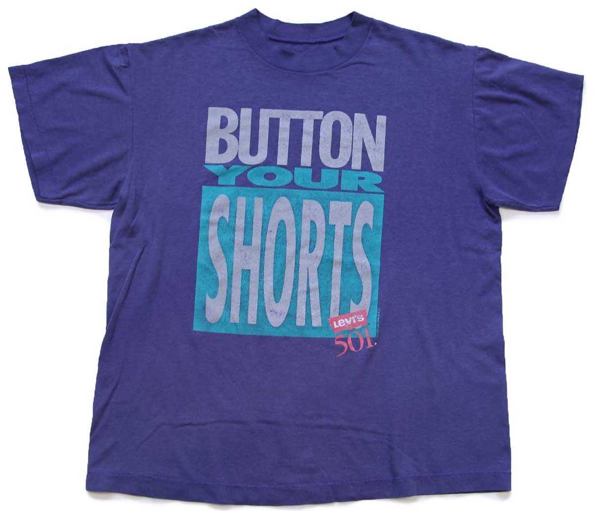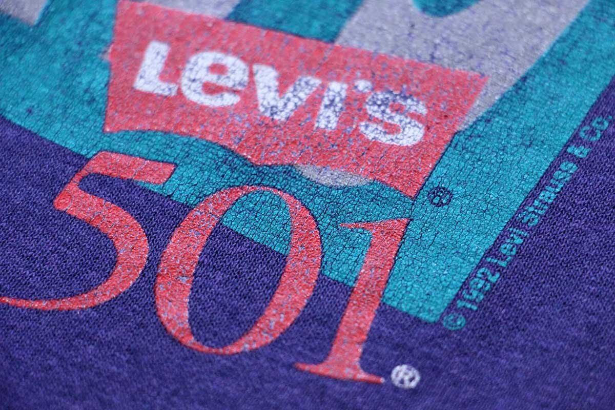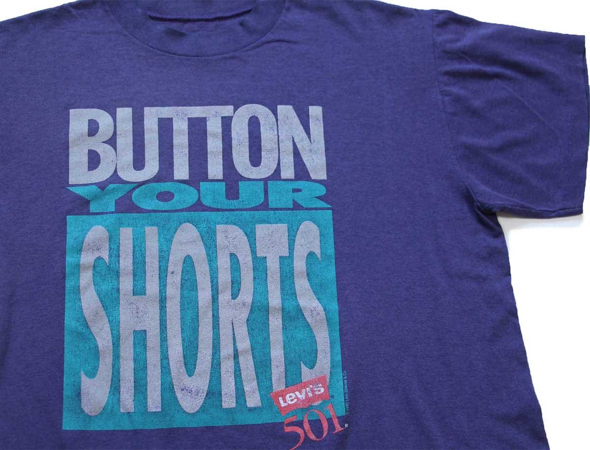 ★90s Levi'sリーバイス 501 BUTTON YOUR SHORTS Tシャツ 杢パープル★オールド ビンテージ ジーンズ ロゴ クルーネック