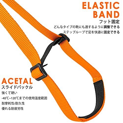 ナイロンウェビング。20mmナイロンウェビングを使用して製造されるフットループは、より強くて耐久性に優れ、長持ちできます。足元ストラップ部分はさらに厚く縫製され、丈夫で十分な強さを提供し、靴をループに簡単に踏み入れます。靴の位置を固定し、足が抜けません。さらにブラックウェビングを使用し、汚れが目立たなく、メンテナンスも簡単になります。