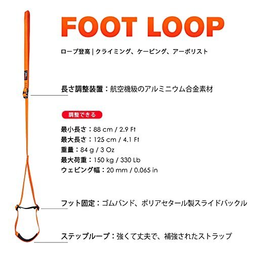 ブランド:GMCLIMBINGカラー:フットループ長さを調整できるGMCLIMBINGのフットループは88cm~125cmの調整範囲を提供し、どんなタイプやサイズの靴、使用者の身長に合わせて最適のサイズに調整でき、アーボリスト、クライミングなどのロープ登高に適します。