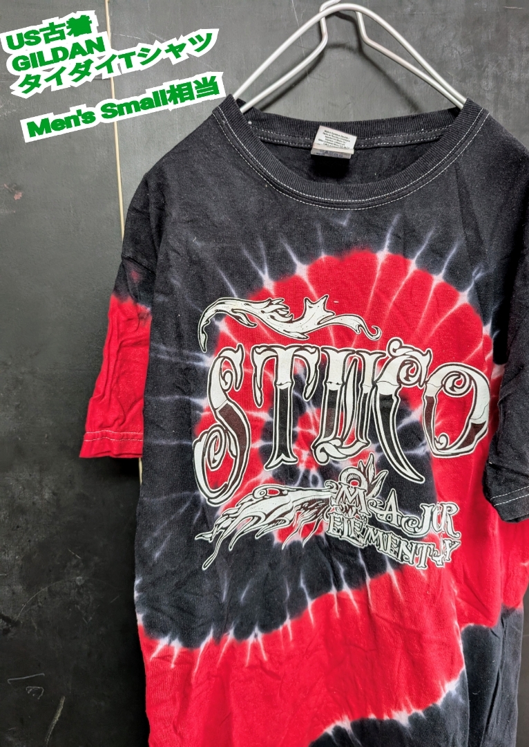 ★送料無料★ US古着 GILDAN タイダイTシャツ ギルダン タイダイTシャツ タイダイ染め ロゴプリント 派手Tシャツ Small 相当