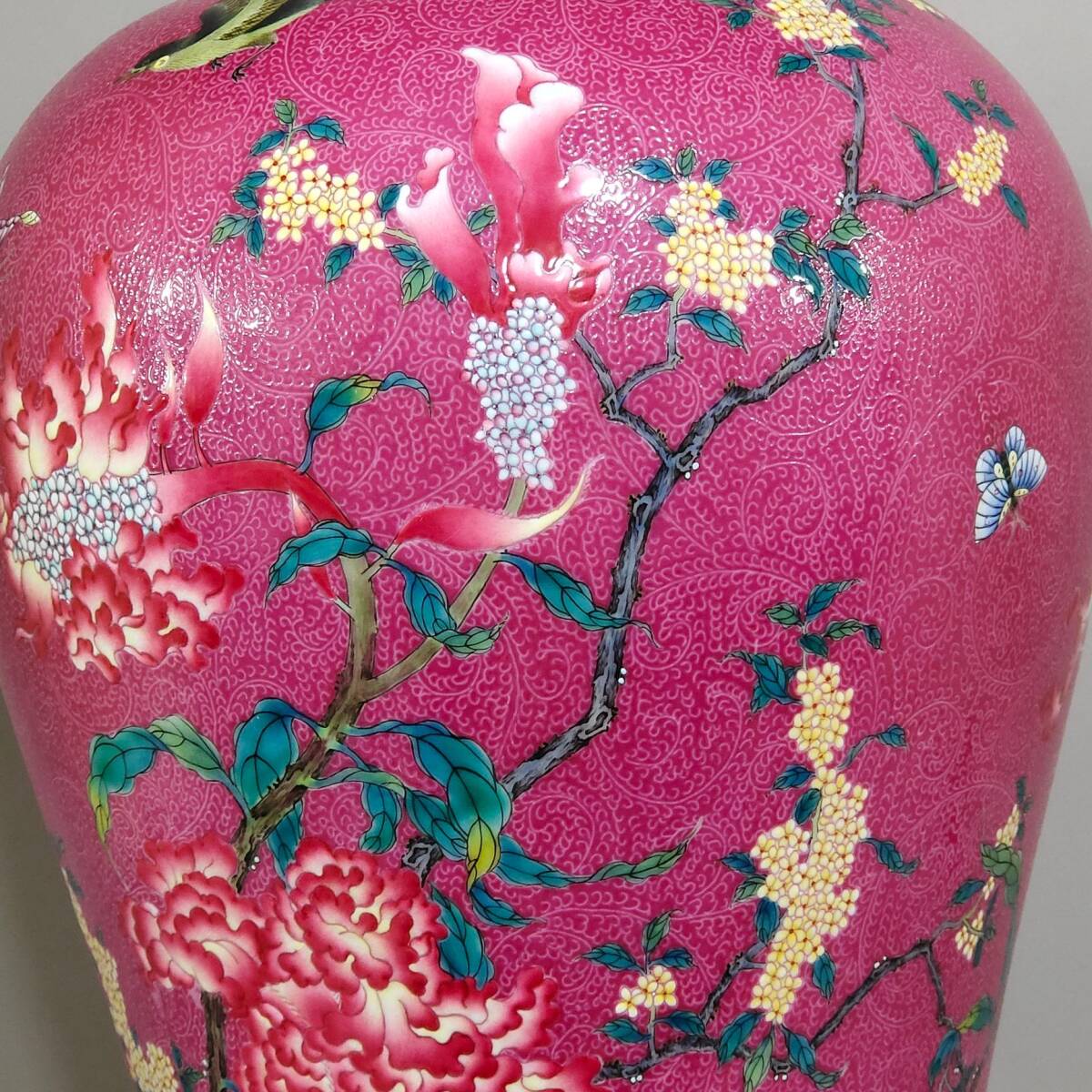 ◆珍蔵◆中国古美術 大清雍正年製款 臙脂紅 描金 扎花 花鳥紋梅瓶 精品 細密細工造 置物 擺件 古賞物 時代物 A43