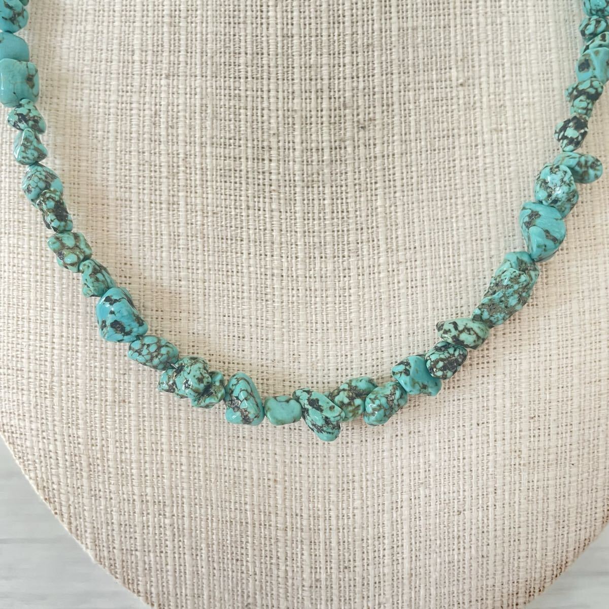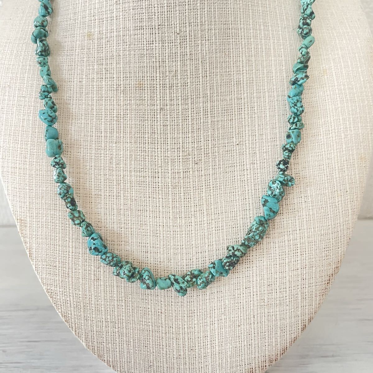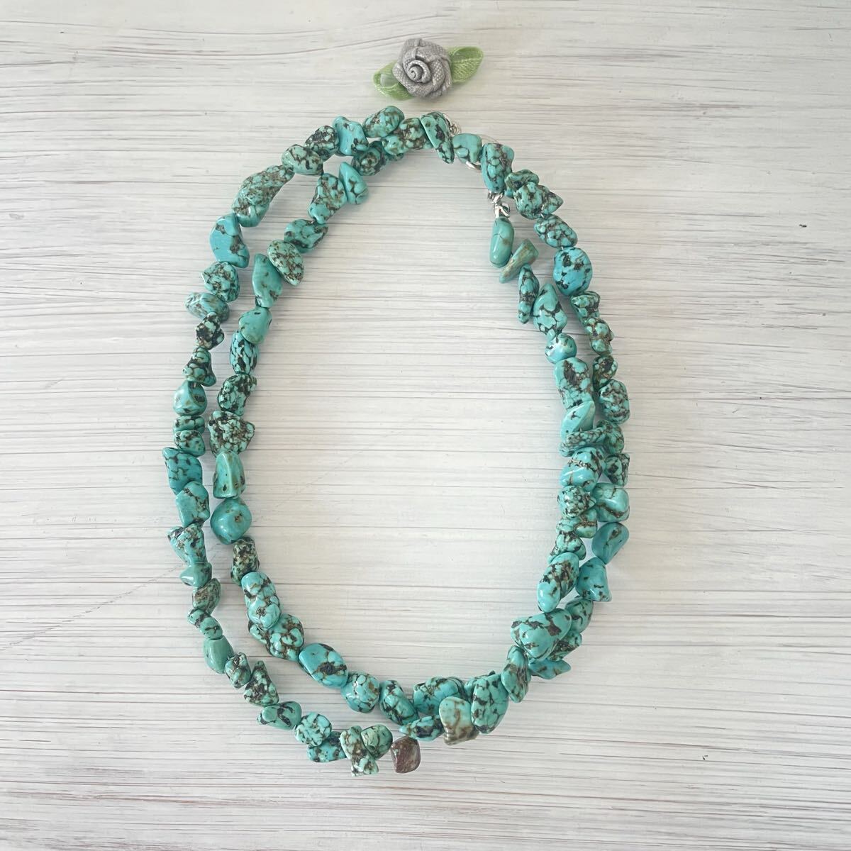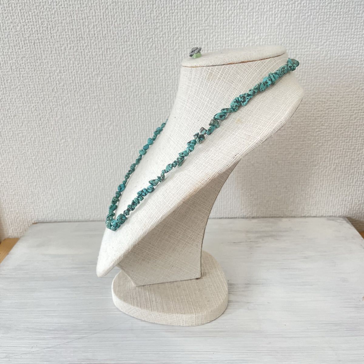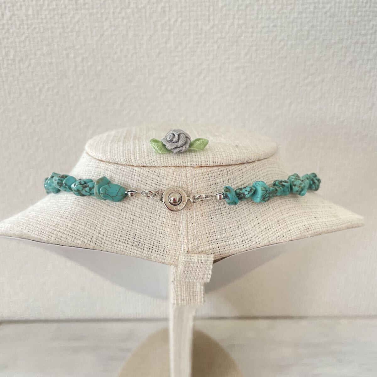 線が細いターコイズブルーネックレスですので他のネックレスとの重ね付けにもバッチリです。