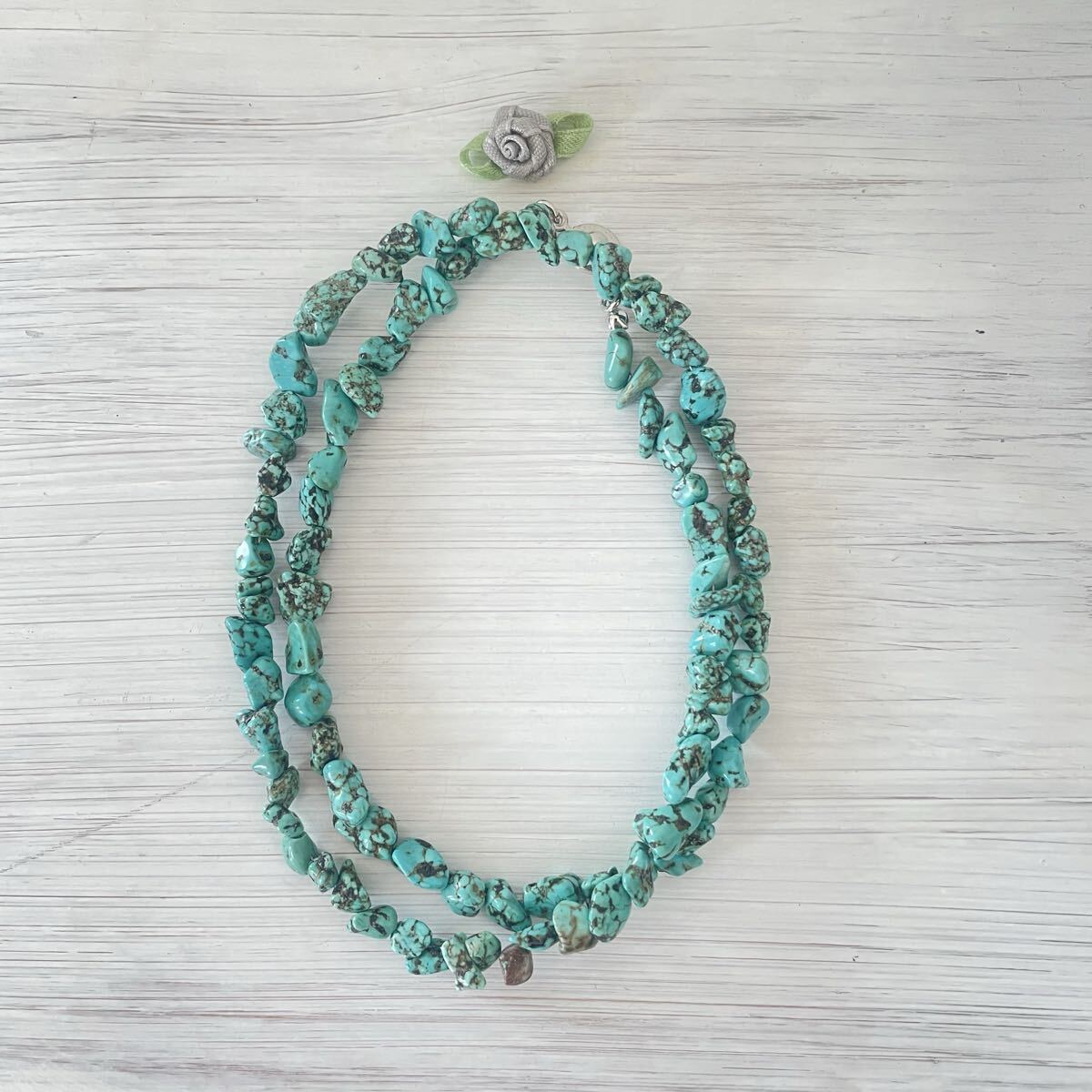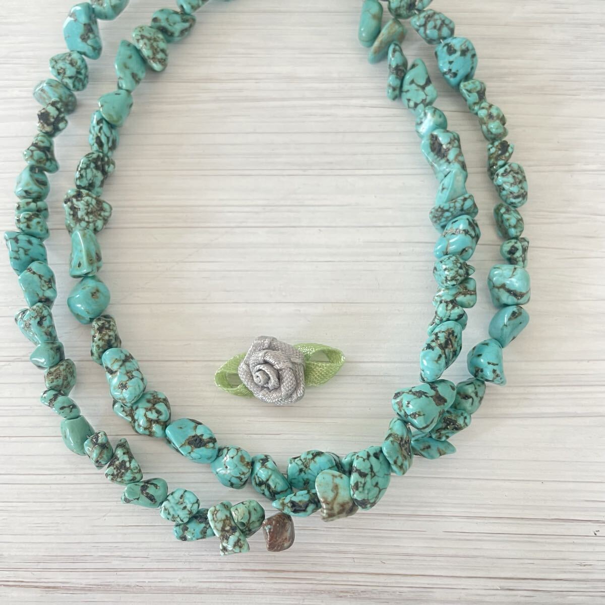 こちらのネックレスは「ターコイズブルー」と言うパワーストーンのネックレスです。