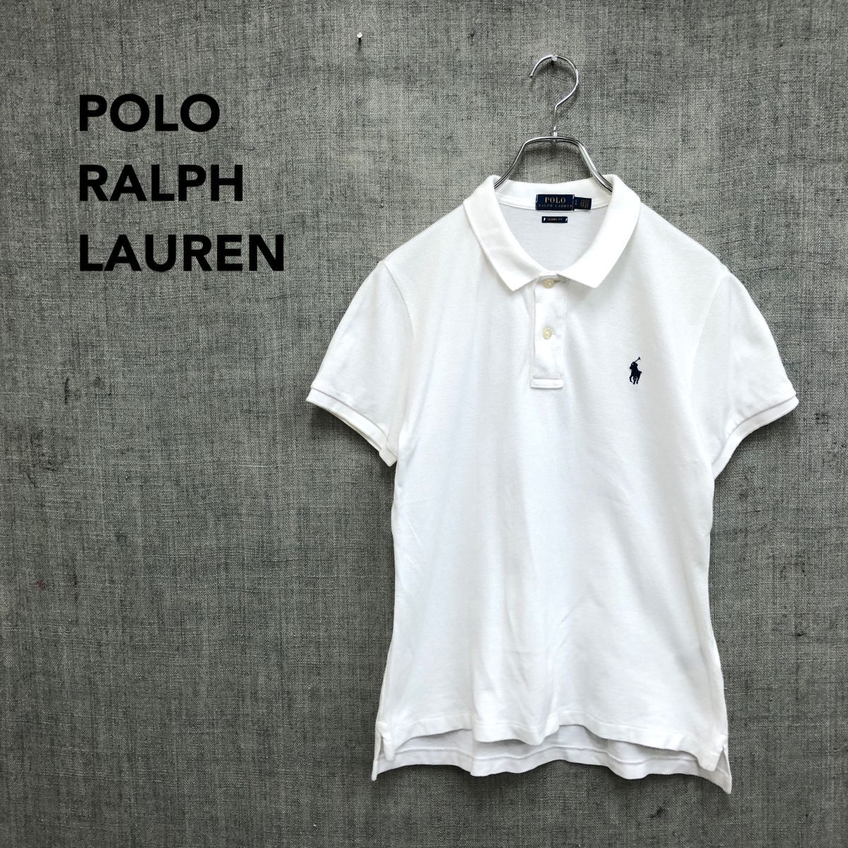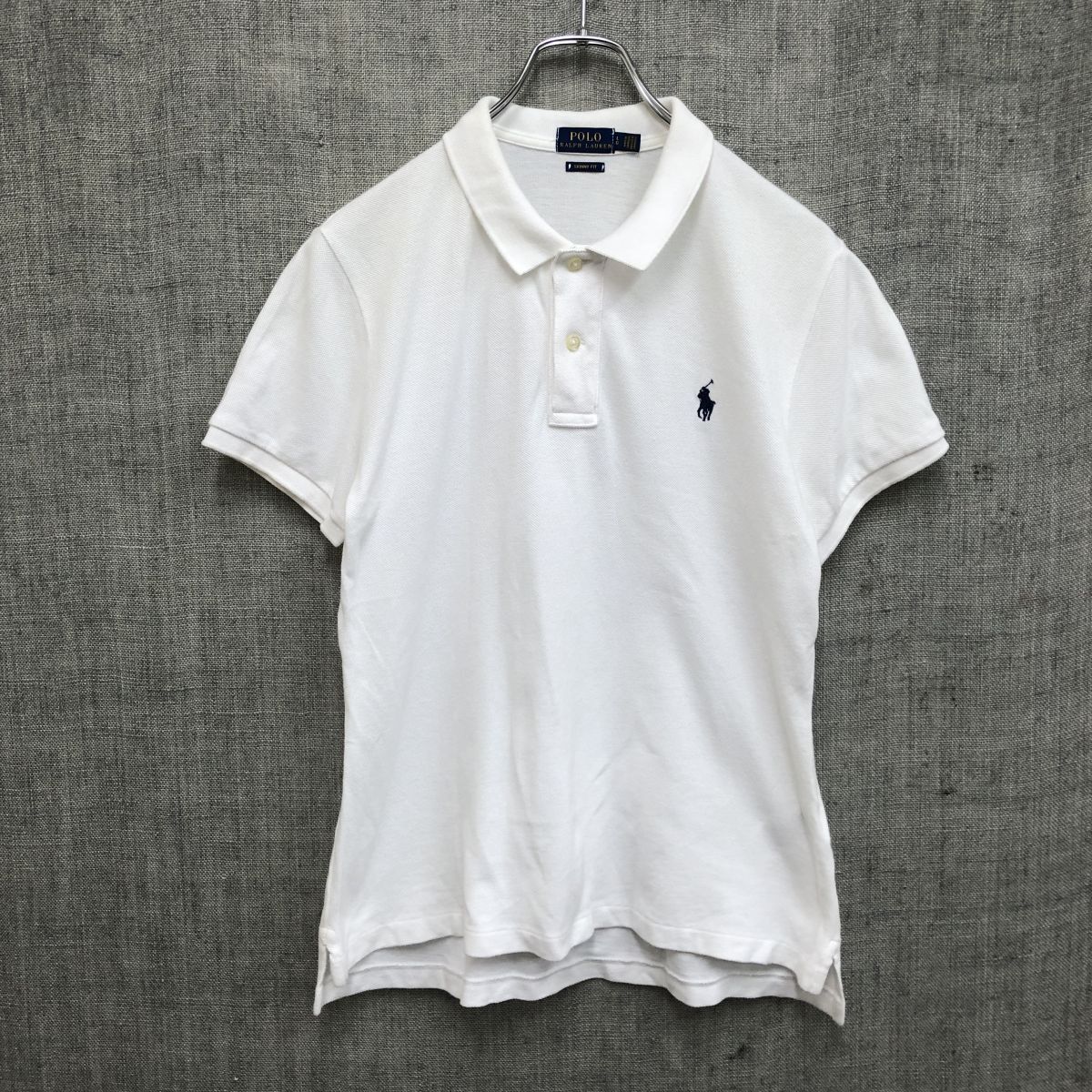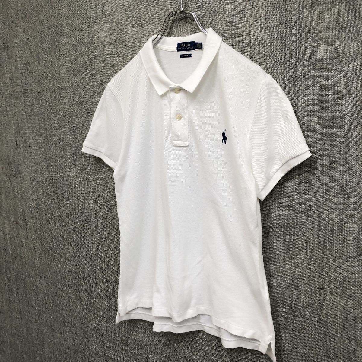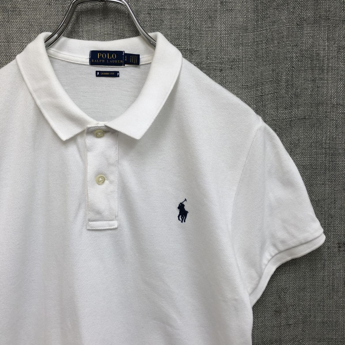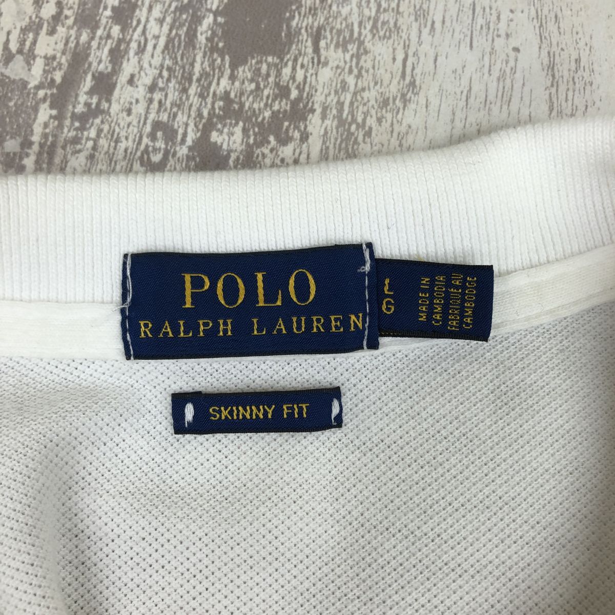 2K1033-G-N◆ POLO RALPH LAUREN ポロラルフローレン ポロシャツ スキニーフィット 袖口リブ ワンポイントロゴ スリット ◆ sizeL 白 綿