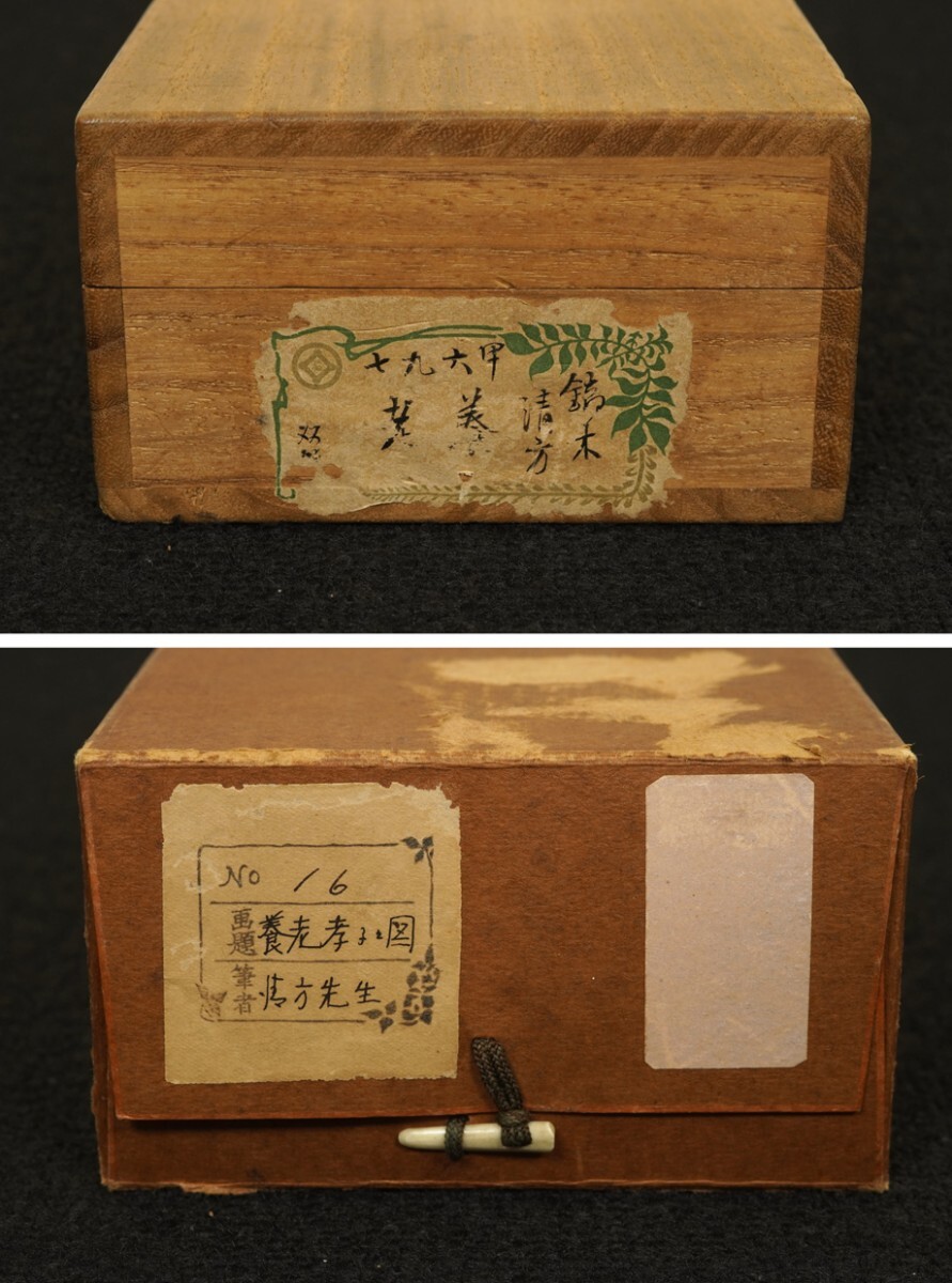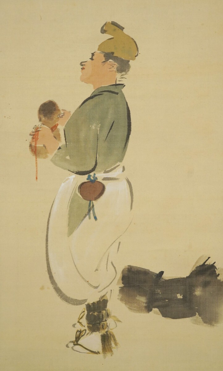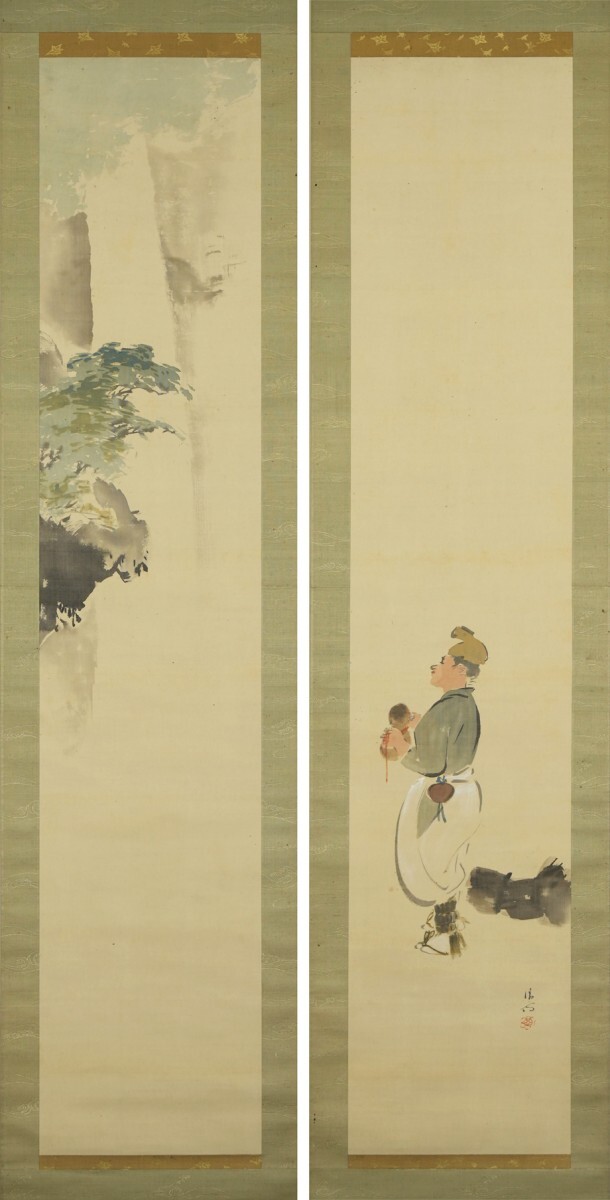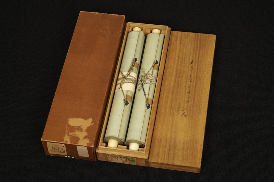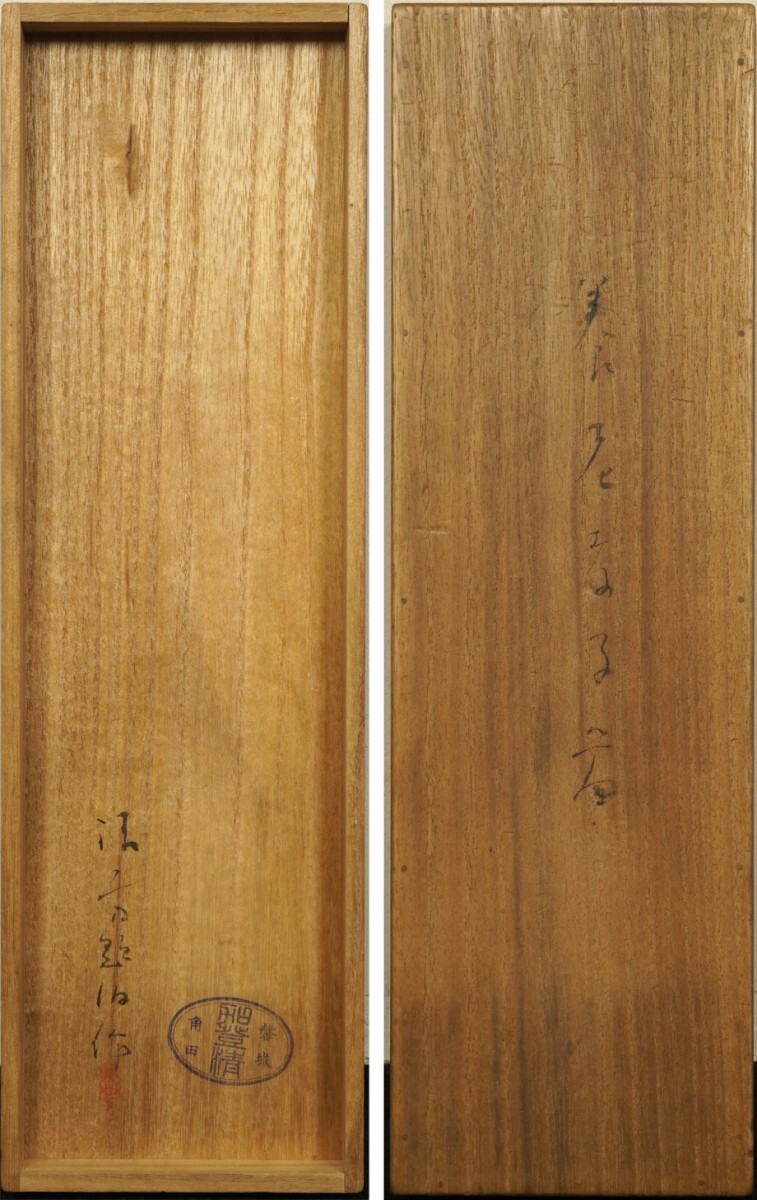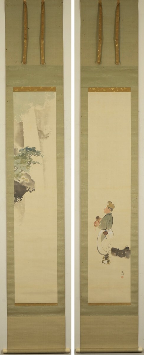 総丈サイズ…各 横 32.5 × 縦 200.5 cm 絹本着色・共箱 松坂屋美術部口貼有 状態…少シミ 表具少ヤケ 本紙微少剥落 【印刷ではありません】 【真作】 鏑木清方 日本画家。東京生。名は健一。14歳の時水野年方に入門し、新聞や雑誌で挿絵を執筆した。烏合会、のち金鈴社を結成。江戸文化の教養に支えられ、粋の美意識を反映した人物画、ことに美人画に多くの秀作を生み出す。文筆家としても優れ『こしかたの記』等多くの随筆集がある。帝室技芸員・芸術院会員。文化功労者。文化勲章受章。昭和47年(1972)歿、93歳。 |