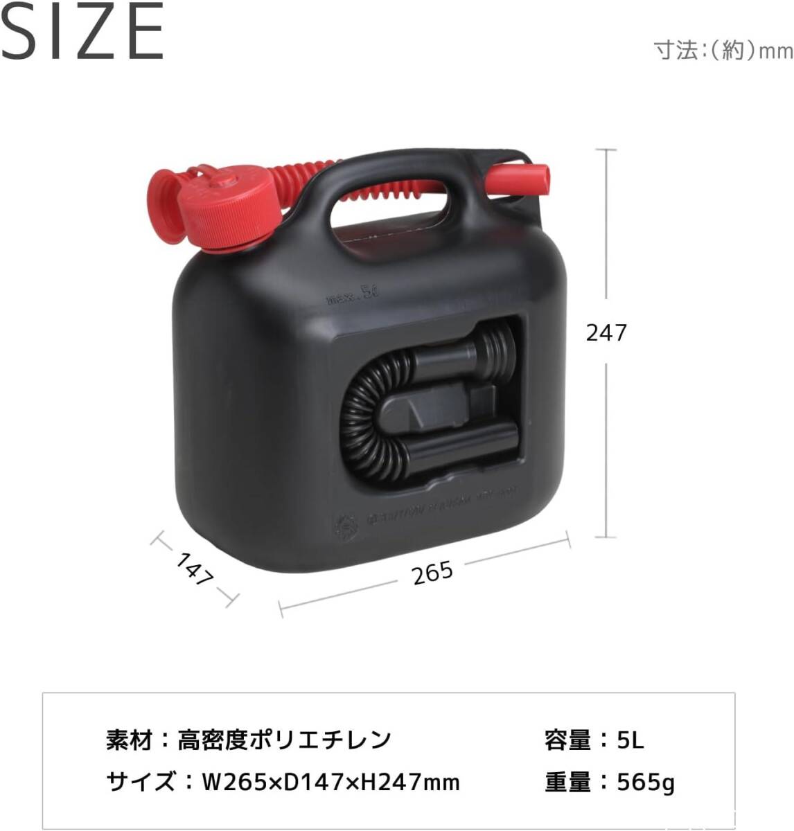 スペック:UN規格・消防法適合品 第一石油類までの燃料を携行可能です。(ガソリン・軽油・ホワイトガソリン・灯油・燃料用アルコール等 ※但し、ガソリン・軽油・ホワイトガソリンは容量が10Lを超える場合でも消防法により10Lまでです) ※但し、ガソリン・ホワイトガソリンについては消防法の規定により鉱材以外の燃料タンクで車輌を使用しての運搬は認められていないことから除外とします。