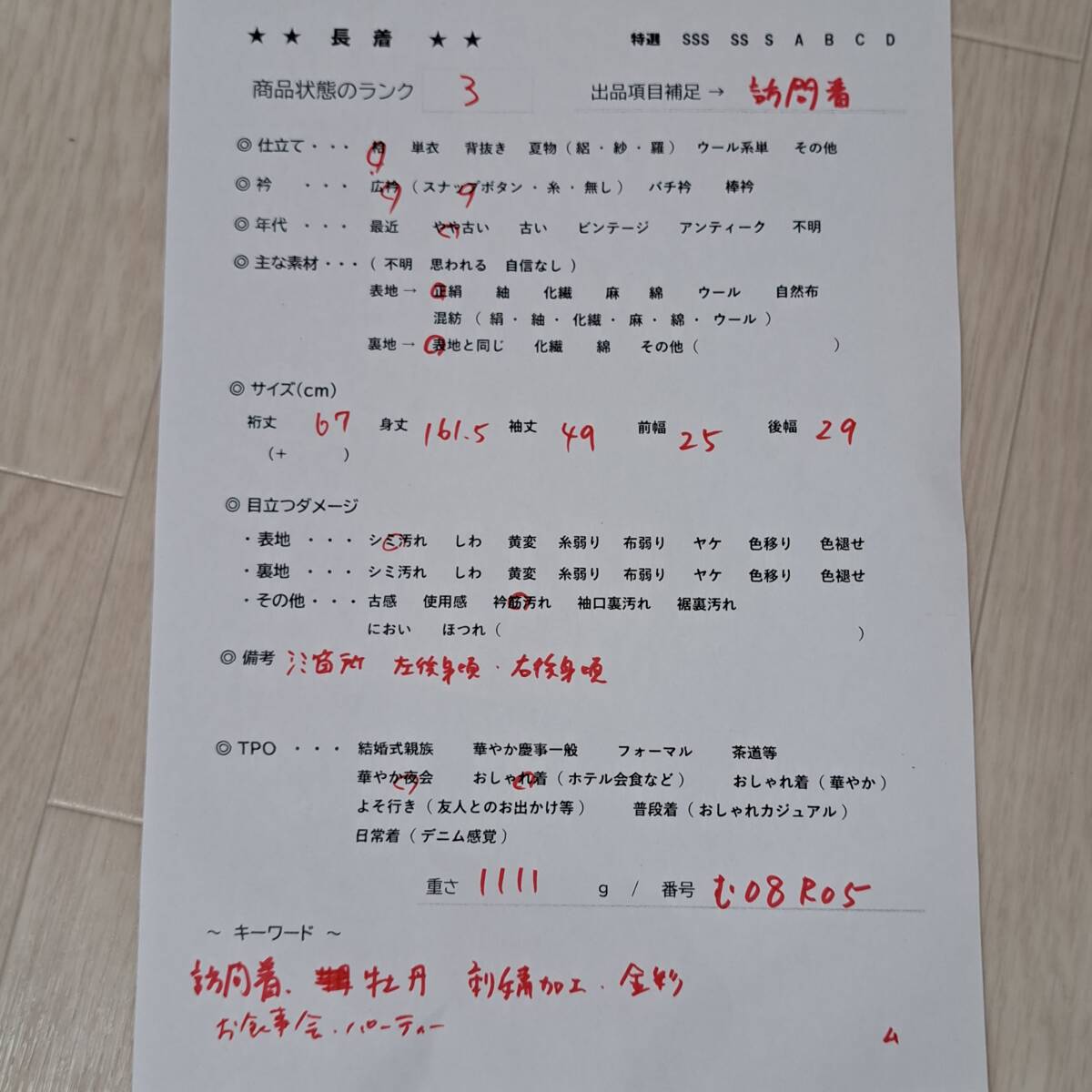 | Z | 着用向けではなくコレクション、鑑賞向けとして販売するお品ものです。布の力が無くリメイクも難しい場合が多いです。 様々な難やシミなどございますので、古き物をご理解いただける方のみご入札ください。ノンクレームノンリターンでお願いいたします。 |