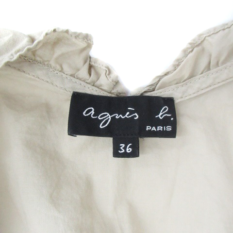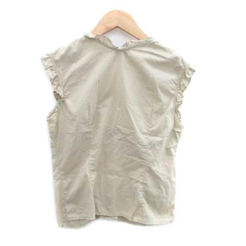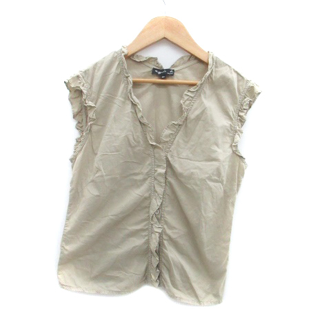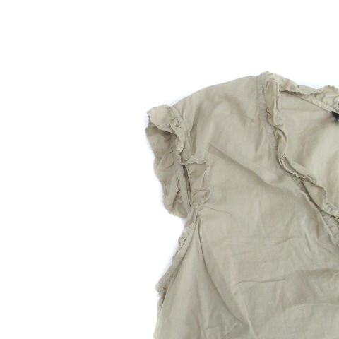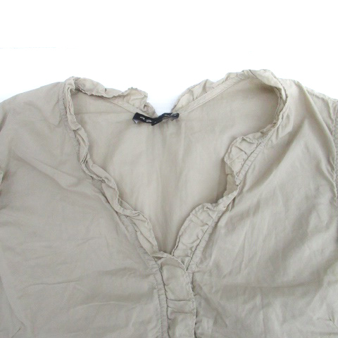 アニエスベー agnes b. シャツ ブラウス Vネック フレンチスリーブ フリル 無地 36 S グレー /HO19 レディース