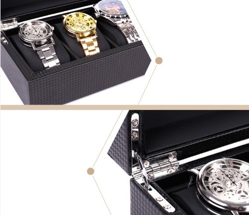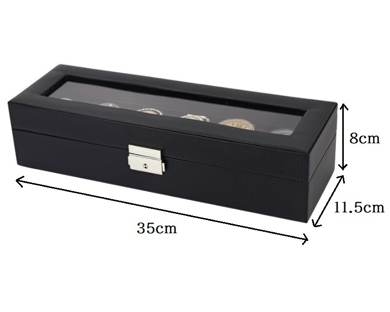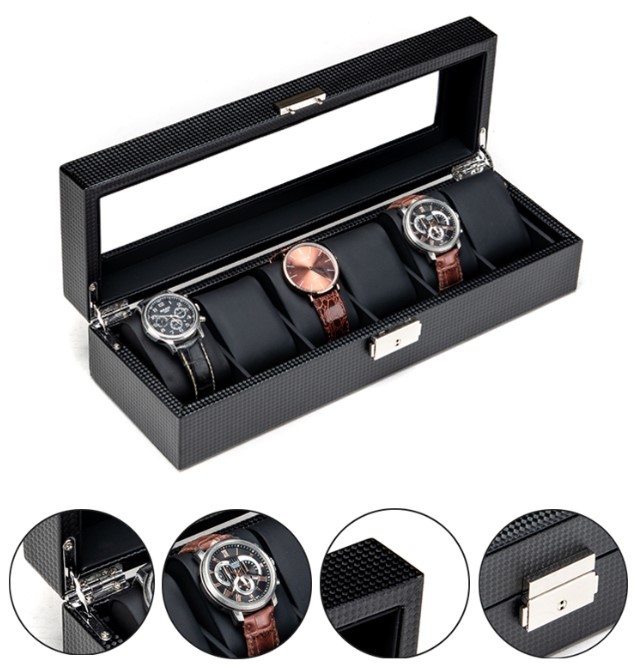 カーボン素材で高級感のあるおしゃれな腕時計収納ケース【6本収納】です。
