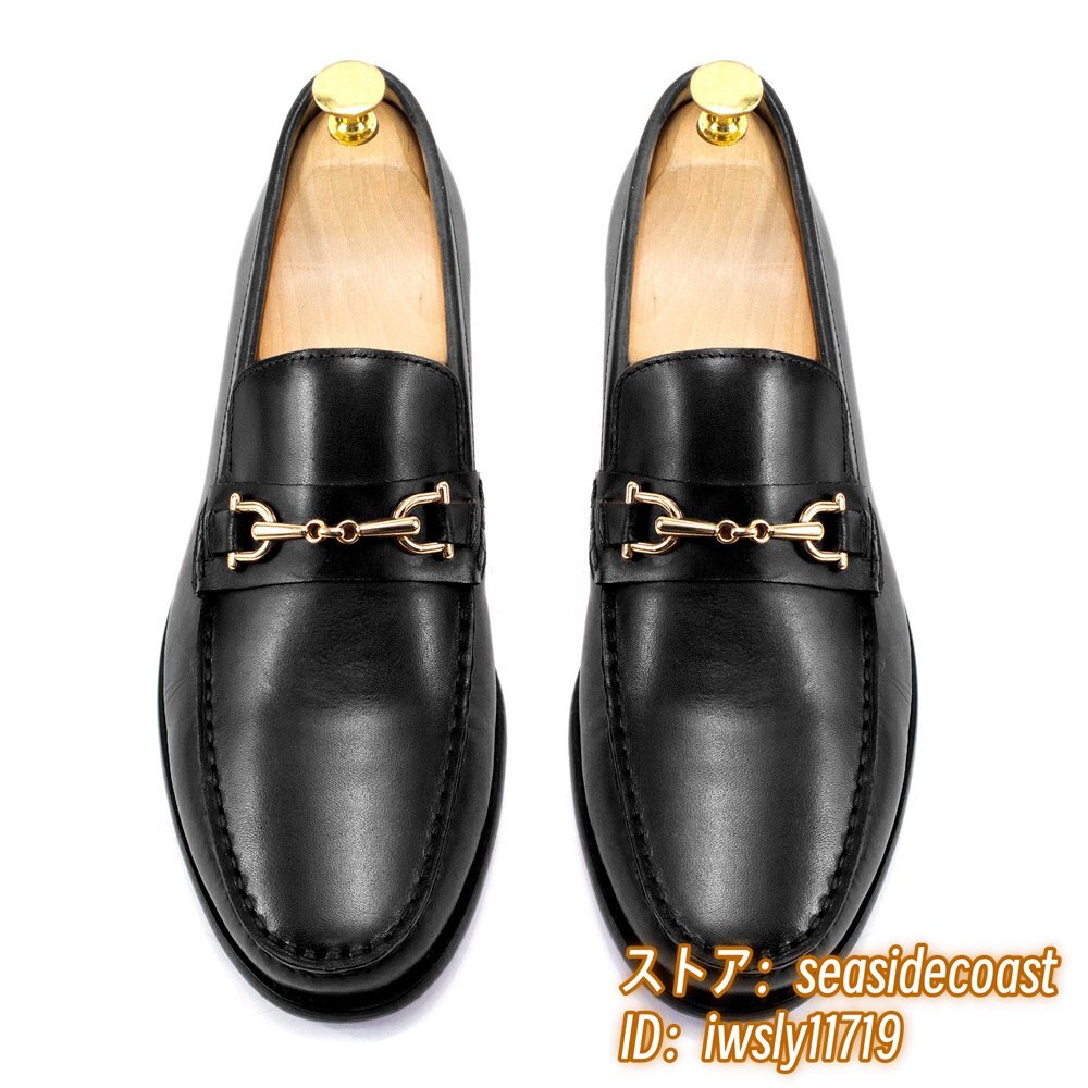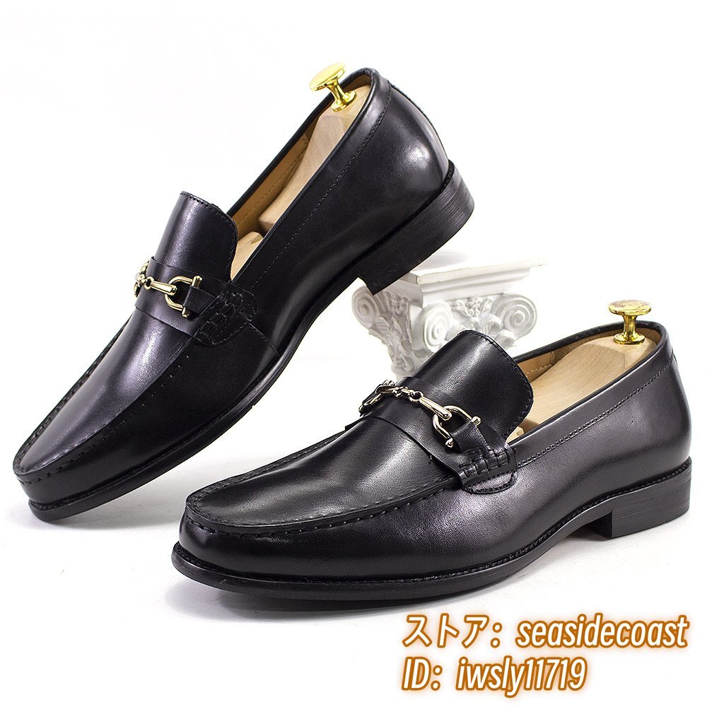定価10万超■ビジネスシューズ メンズ 牛革 職人手作り ローファー 本革 スリッポン レザーシューズ 紳士靴 革靴 超美品 ブラック 26.5cm