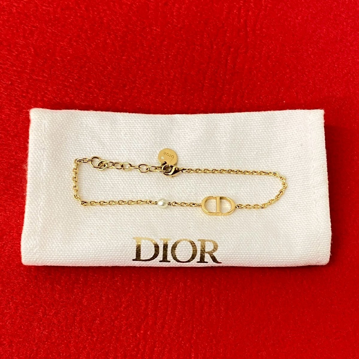 極 美品 袋付き Christian Dior クリスチャンディオール CD ロゴ フェイクパール ブレスレット アクセサリー ゴールド 86898