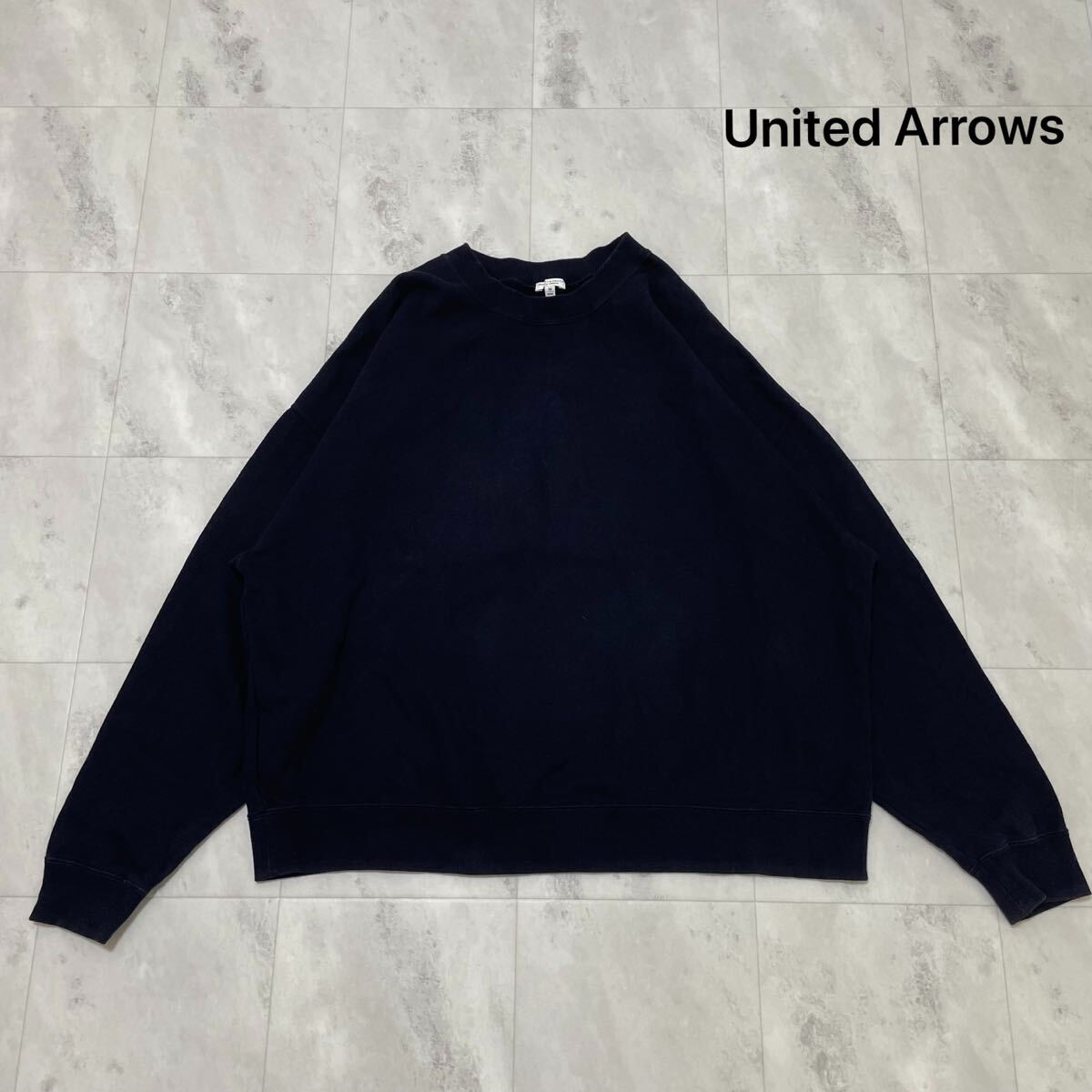 United Arrows ユナイテッドアローズ sweat スウェット トレーナー 長袖 無地 セレクトブランド ワイドシルエット ネイビー サイズM 玉ss4288