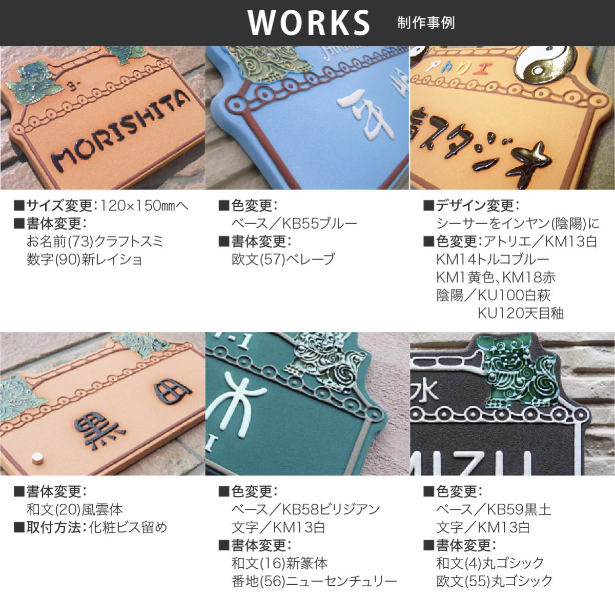 | 商品詳細 | アジア、アフリカ、中南米、アラビアなど、様々なモチーフと民芸品風の素朴なスタイルを取り入れた和風にも洋風にも合うエスニック表札シリーズ。魔除け・厄除けにもなるユーモラスな表情のお家の守り神・シーサーの表札です。縁起の良い浮き出し文字(凸文字)表札は全国でも珍しく、川田美術陶板ならではの技術です。 |