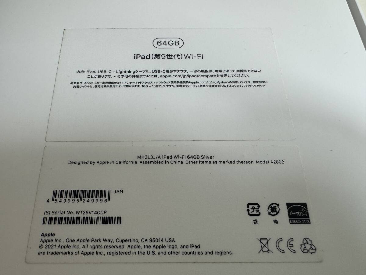 【超美品】送料無料 Apple iPad 10.2 インチ 第9世代 Wi-Fi 64GB MK2L3J/A シルバー アップル純正スマートカバー付 iphone 16