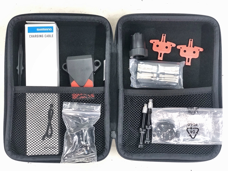 付属品:Di2・パワーメーター充電ケーブル、携帯工具、スペーサー類、コンピューターマウントアダプター、チューブレスバルブが付属します。
