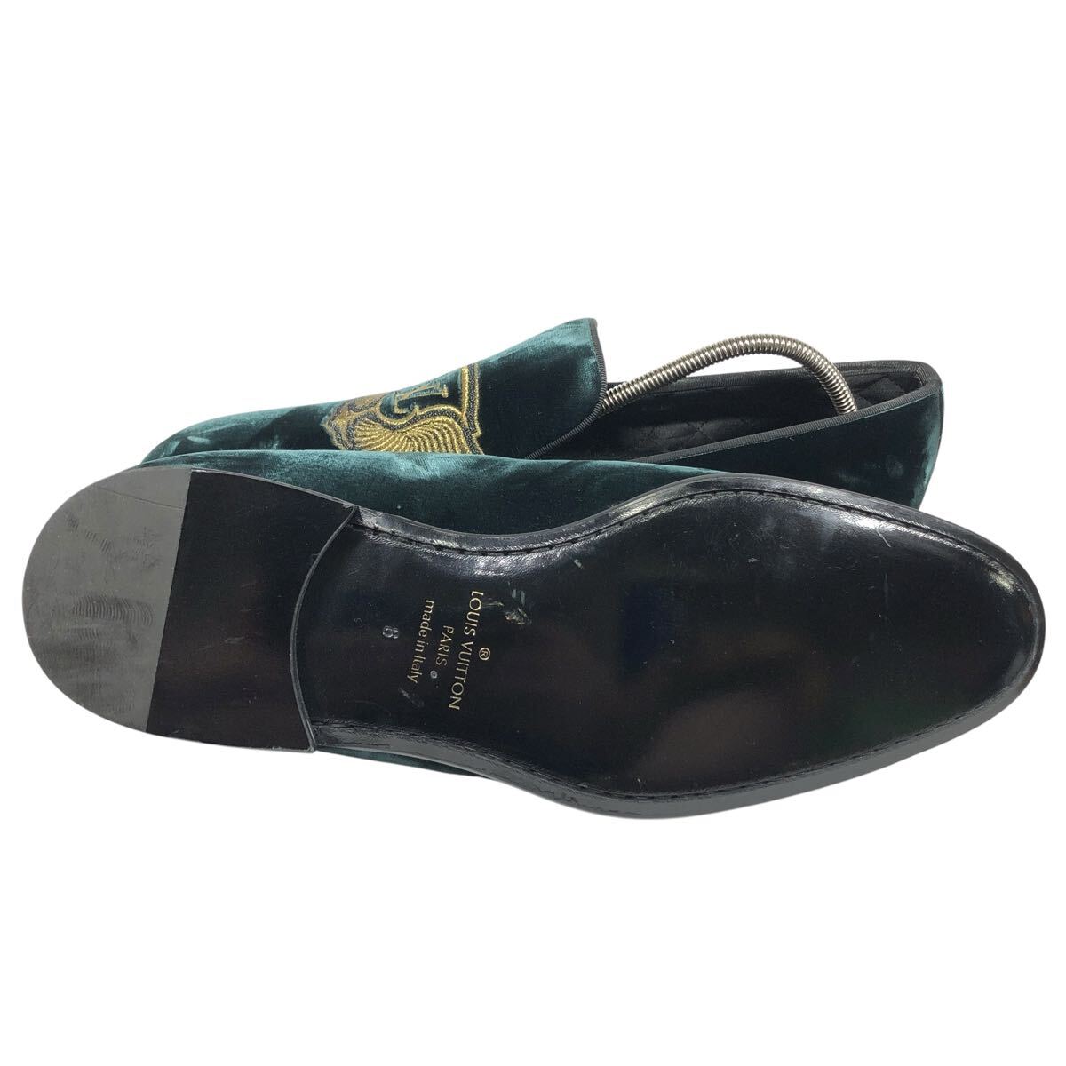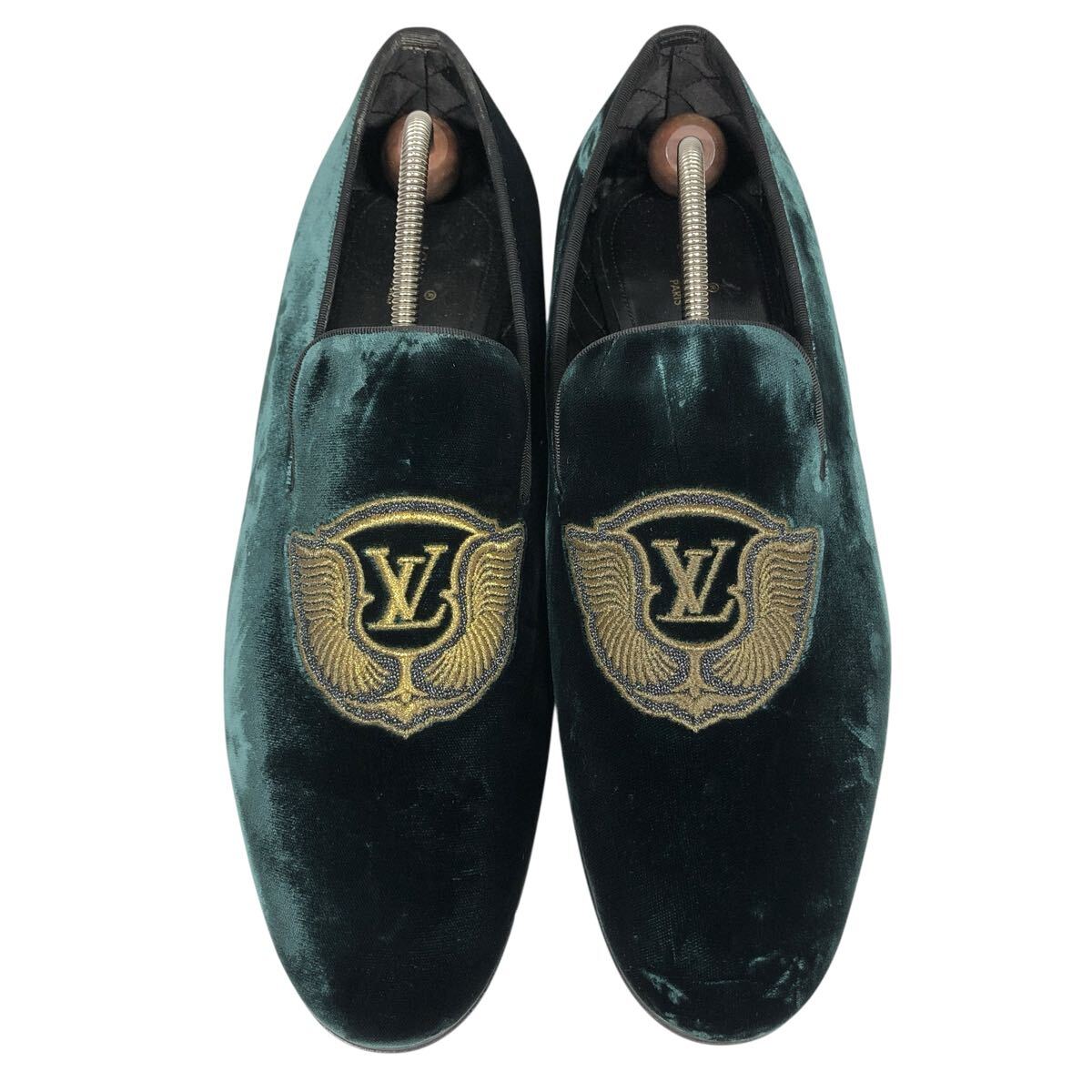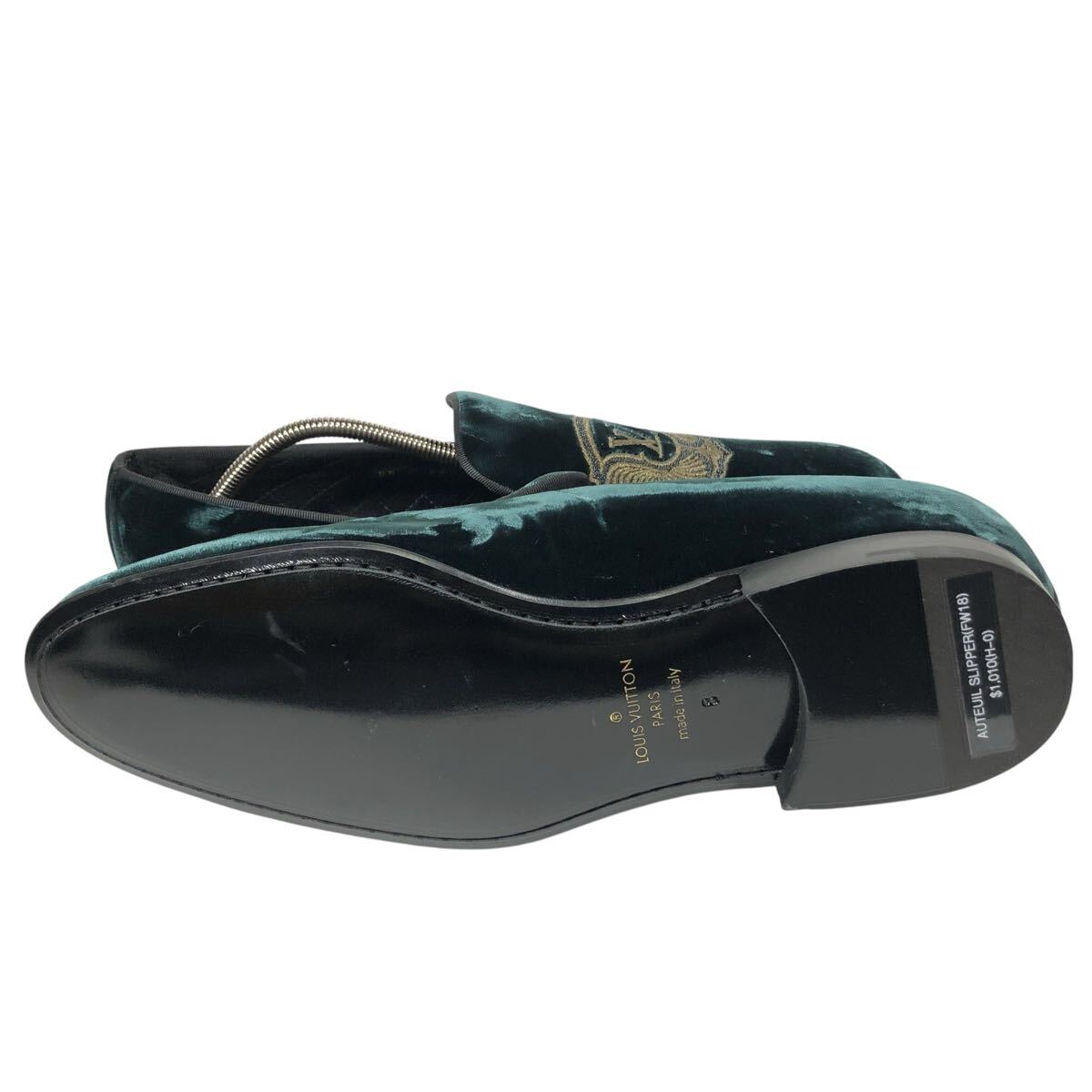 未使用品【ルイヴィトン】本物 LOUIS VUITTON 靴 26.5cm オートゥイユライン LVロゴ刺繍 オペラシューズ ローファー ベロア メンズ 伊製 8