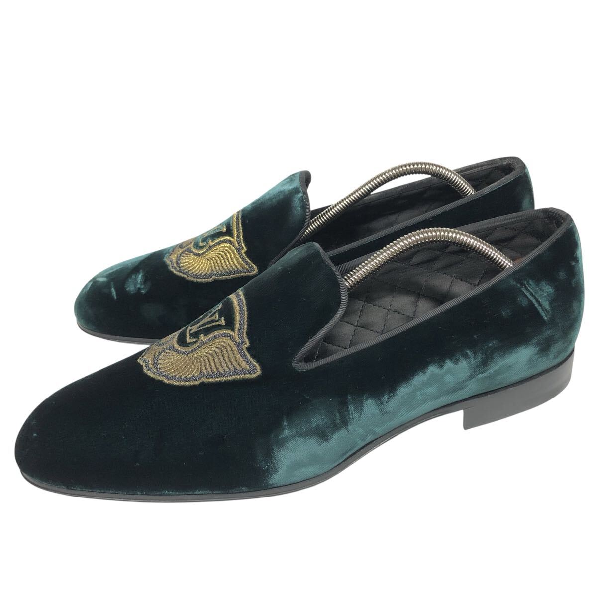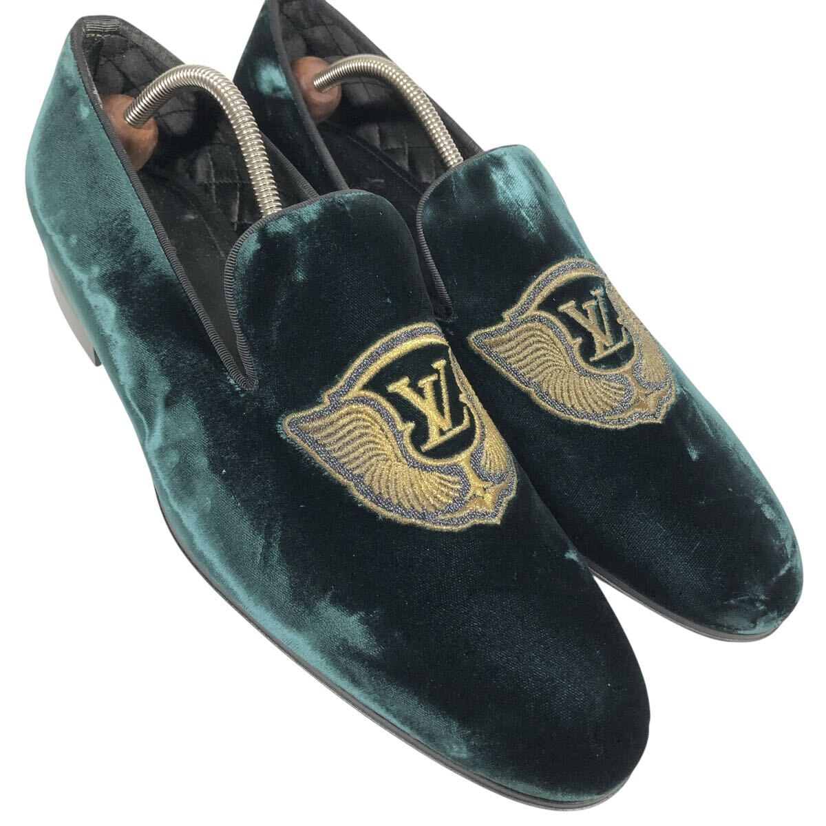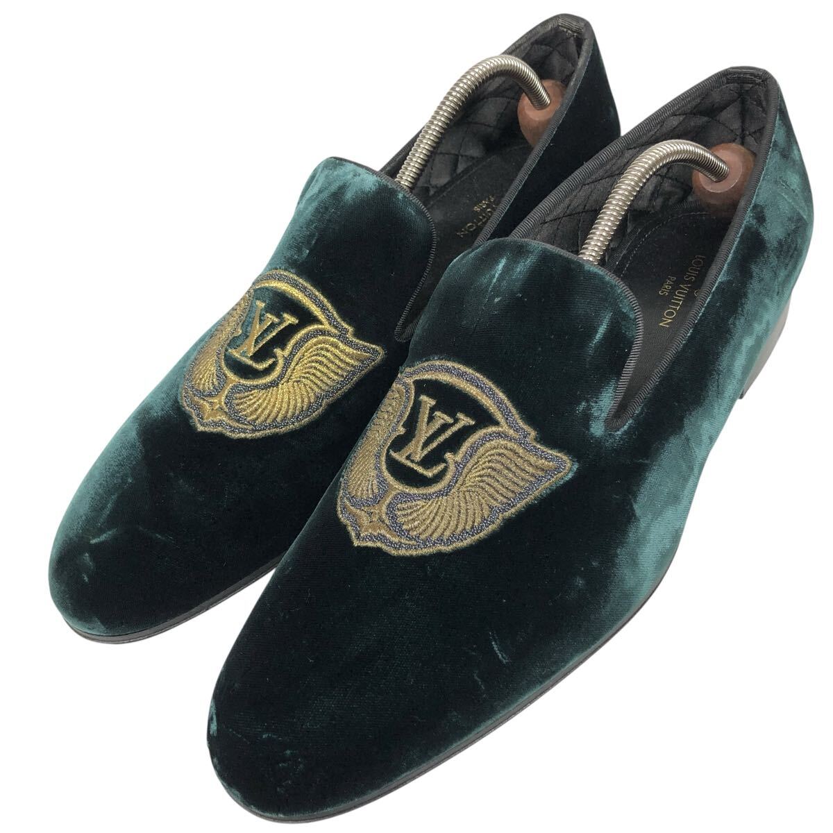 未使用品【ルイヴィトン】本物 LOUIS VUITTON 靴 26.5cm オートゥイユライン LVロゴ刺繍 オペラシューズ ローファー ベロア メンズ 伊製 8