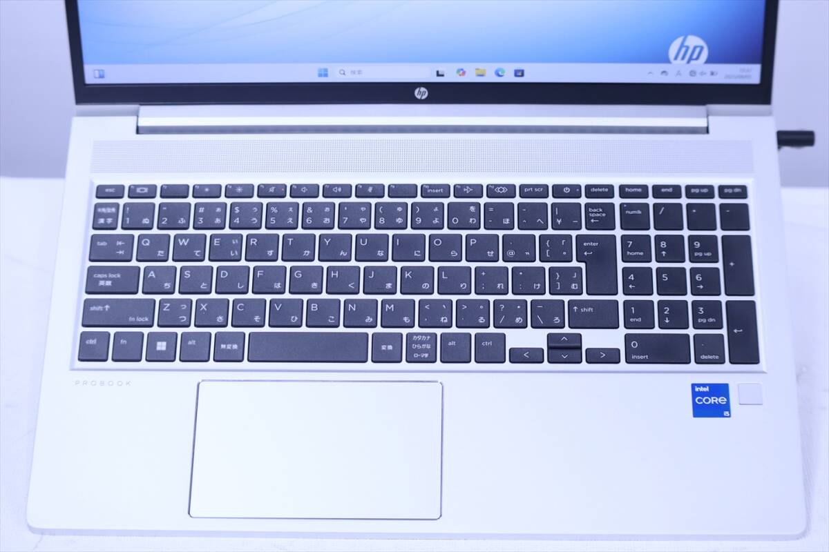【メーカー】日本HP ノートパソコン 【型番/品名】HP ProBook 450 G10 974X9AV 【CPU】Core i5-1334U 1.30GHz / 10コア12スレッド / ターボ・ブースト最大4.60GHz 【メモリ】16GB 【ストレージ】SSD 256GB NVMe PCIe 【ディスプレイ】15.6インチ FHD 解像度 1920x1080 ※カテゴリ--15.0~15.9インチ 【グラフィック】Intel(R)内蔵グラフィックス 【光学ドライブ】-- 【Webカメラ】搭載 【キーボード】テンキー有 【無線LAN】Wi-Fi 6E(IEEE802.11ax)対応 【その他装備】Bluetooth、指紋認証 (※その他インターフェースは画像とメーカーページ等でご確認ください。) 【OS】Windows11Pro-64bit 【Officeソフト】アプリ無し(Microsoft Web版Officeご利用可) 【ウイルス対策】Windows Defender、Windowsファイアウォール 【寸法/質量】( 幅x奥行き x高さ )359.4 x 233.9 x 19.9( 最薄部、 突起部含まず) mm/質量 約1.79kg~(仕様・構成により変動する場合あり) 【付属品】ACアダプタ 【メーカーページ】(スペック完全一致でない場合あり) https://jp.ext.hp.com/notebooks/business/probook_450_g10/ 【取扱説明書】(機種・型番完全一致でない場合あり)。 https://support.hp.com/jp-ja/product/details/hp-probook-450-15.6-inch-g10-notebook-pc/model/2101593818